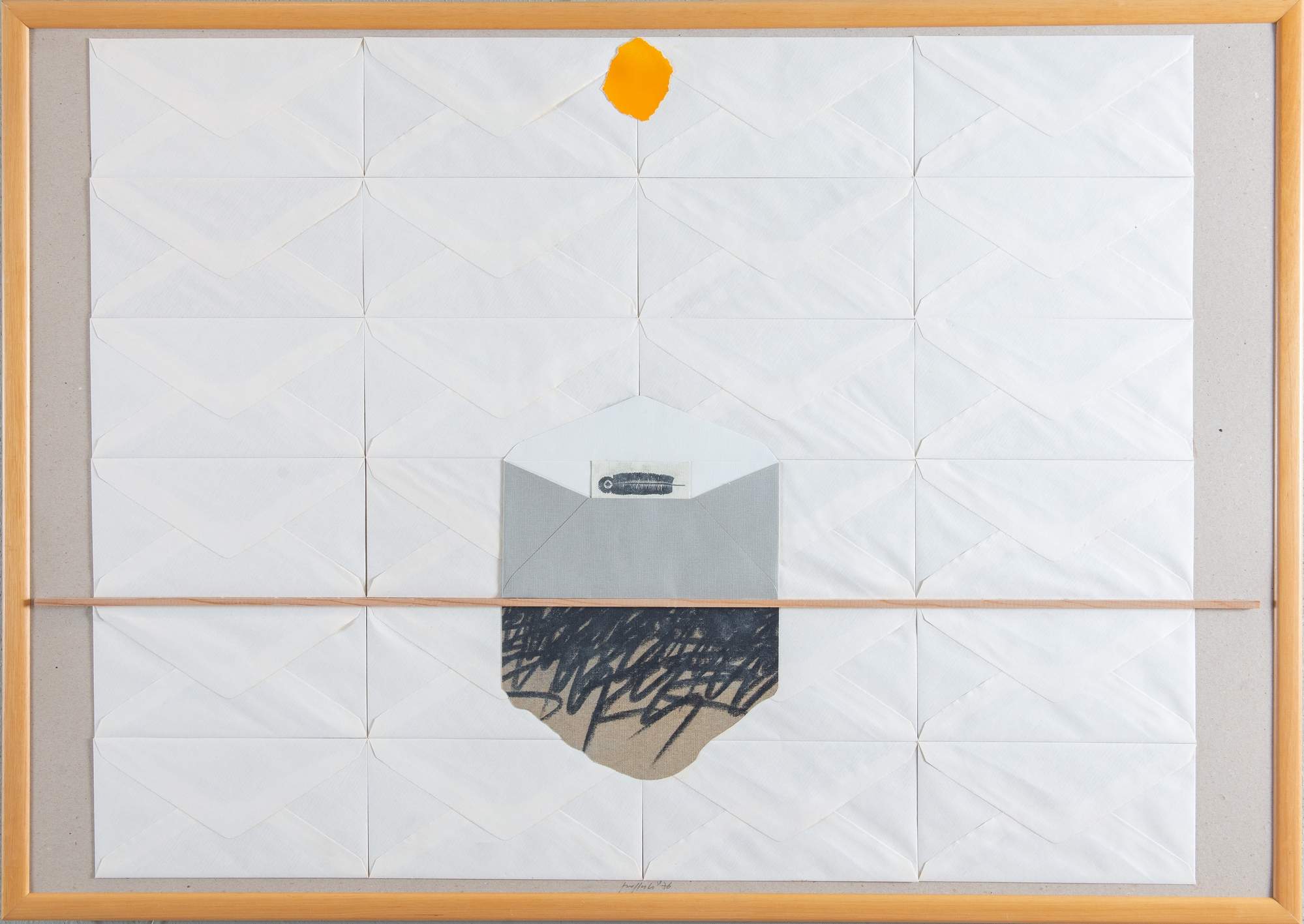 CONCETTO POZZATI (Vo’ 1935 – Bologna 2017) “Senza titolo”, 1976. Tecnica mista e collage su cartone. Cm 70x100. Opera firmata e datata in basso al centro Pozzati ’76.