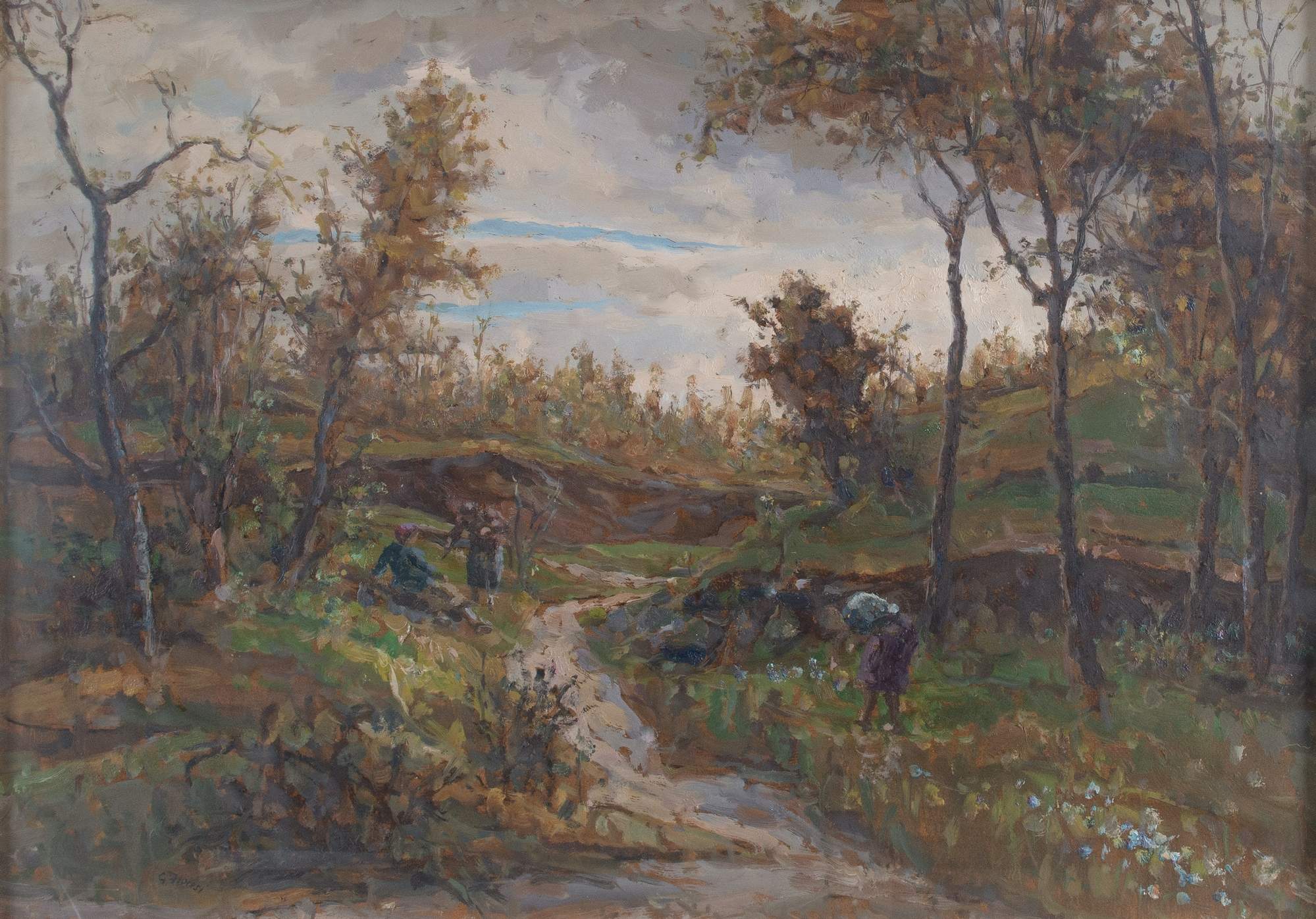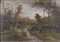 GARZIA FIORESI (Vigevano 1888 - Bologna 1968) "Paesaggio". Olio su faesite. Cm 73x102. Opera firmata in basso a sinsitra G. Fioresi. Al retro opera firmata G. Fioresi.