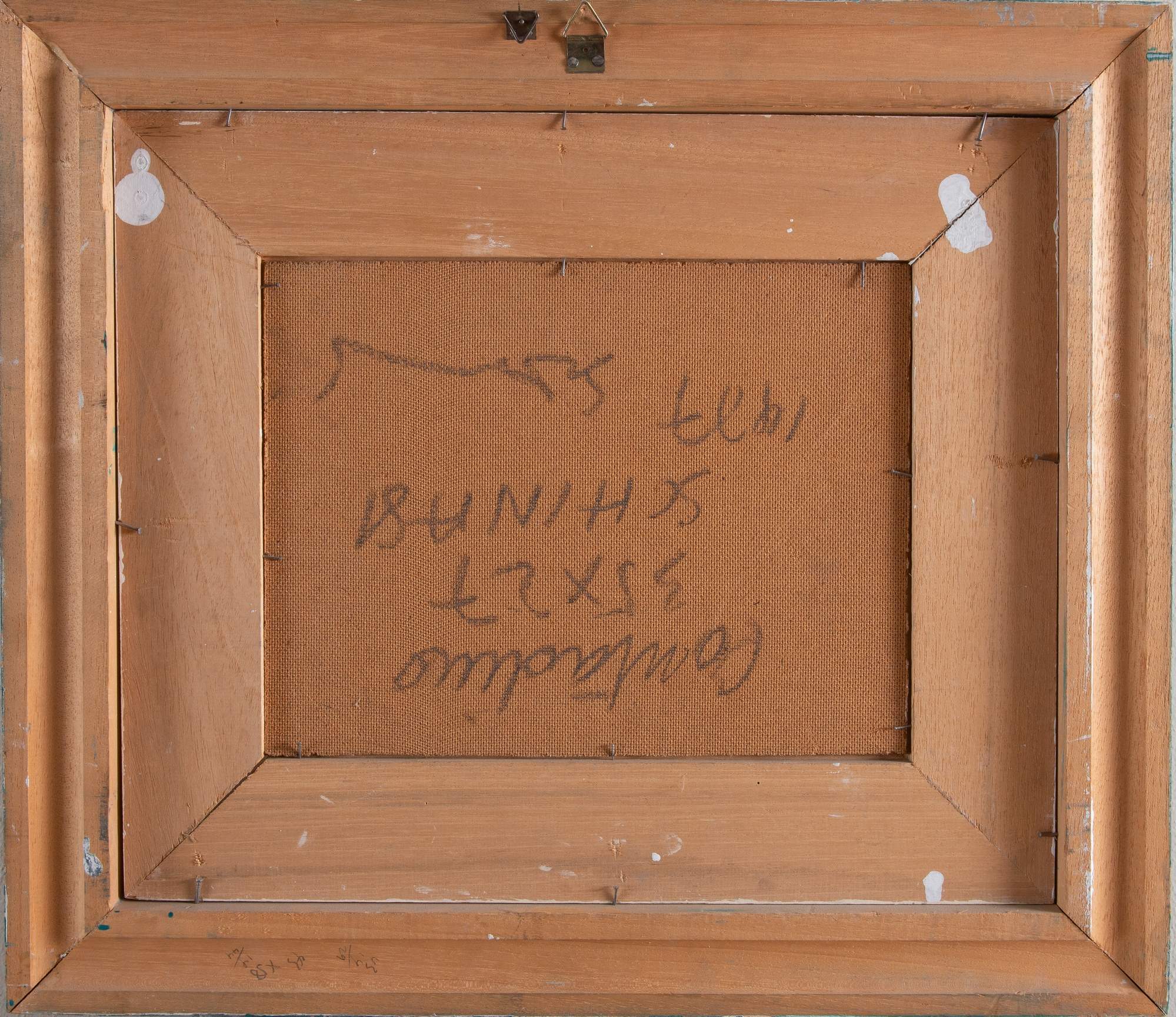 DANIEL SCHINASI (Alessandria d’Egitto 1933) “Contadine”, 1977. Olio su faesite. Cm 27X35. Opera firmata in basso a destra Schinasi. Opera datata in basso a sinistra ‘77. Al retro opera intitolata firmata e datata Contadine Schinasi 1977.