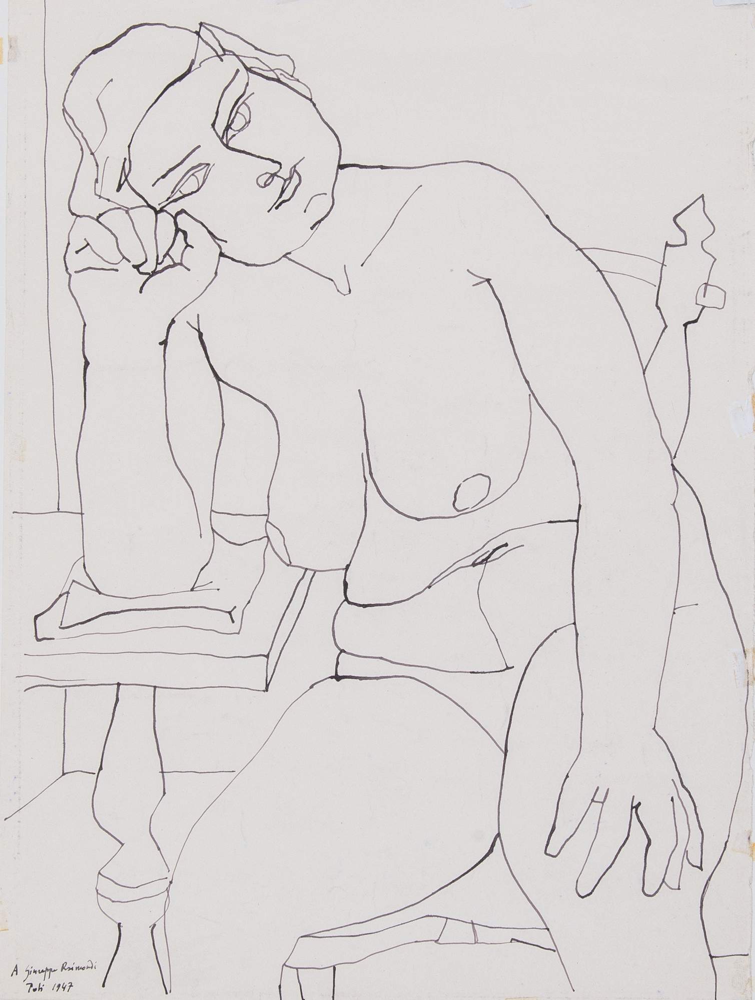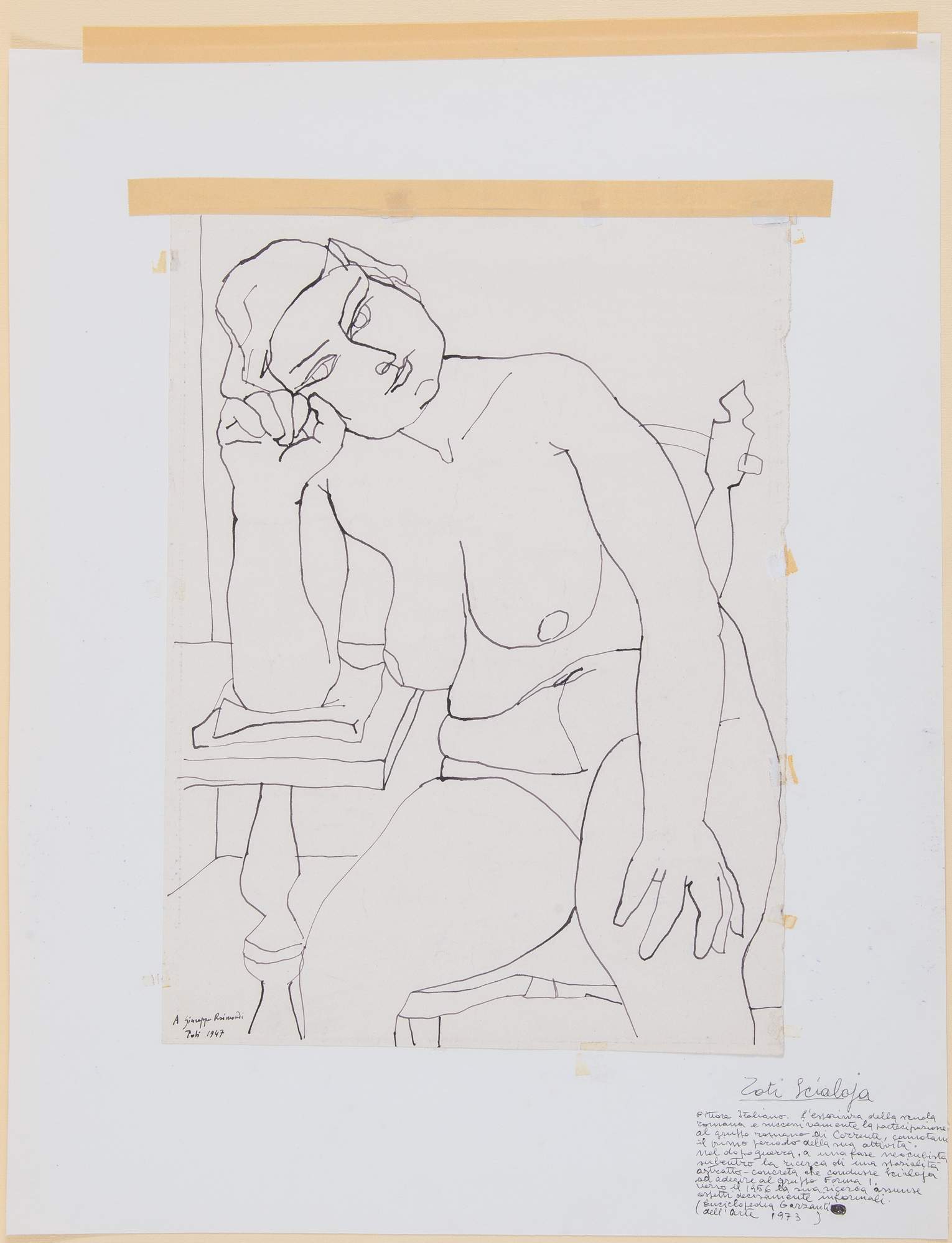 TOTI SCIALOJA (Roma 1914 - 1998) “Nudo di donna”, 1947. China su carta. Cm 44x32,5. Opera firmata e datata in basso a sinistra Toti 1947. Opera dedicata in basso a sinistra A Giuseppe Raimondi.