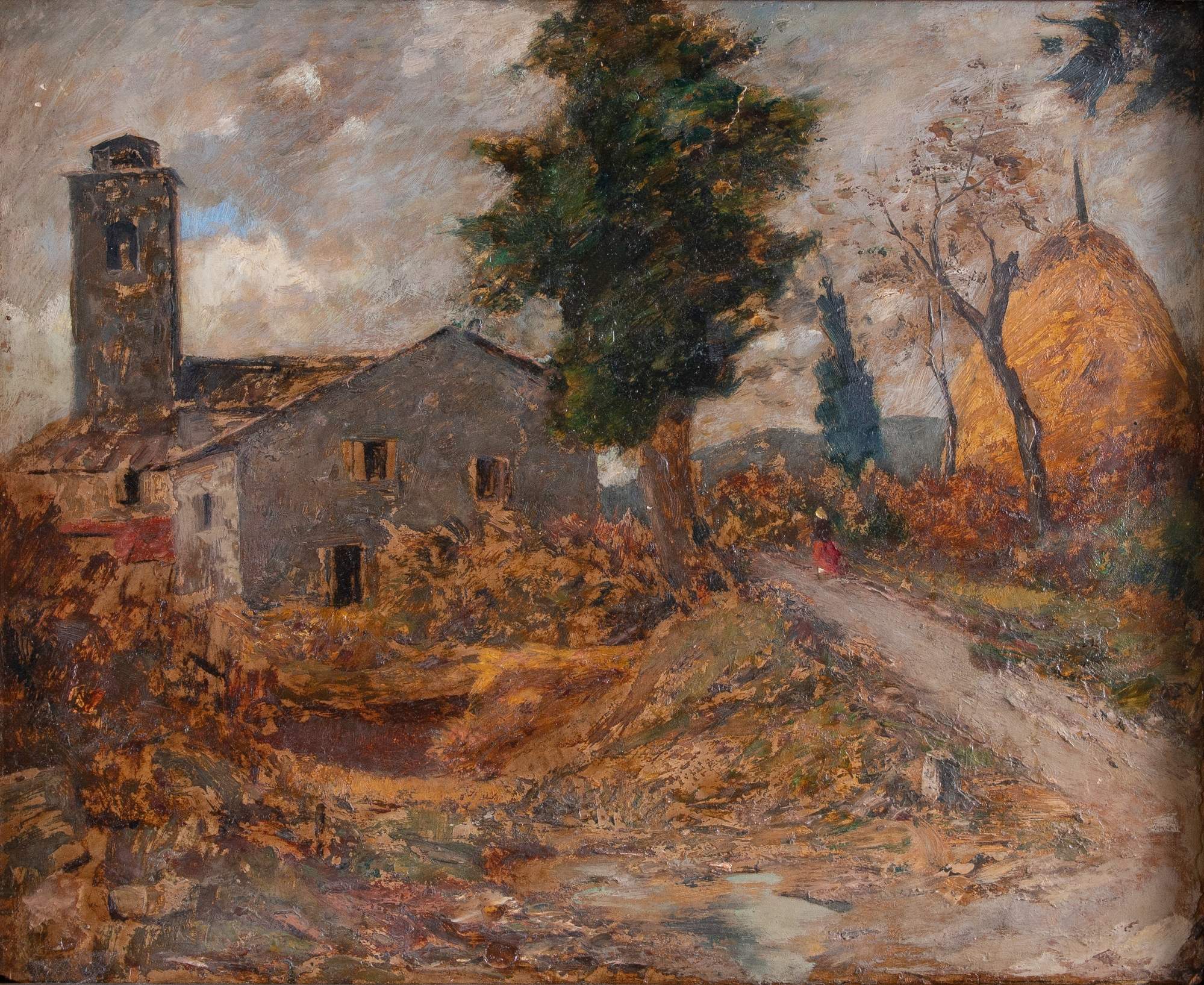 DANTE COMELLI (Bologna 1880 – 1958) “Paesaggio”. Olio su tavola. Cm 45x55. Opera firmata al retro Dante Comelli.
