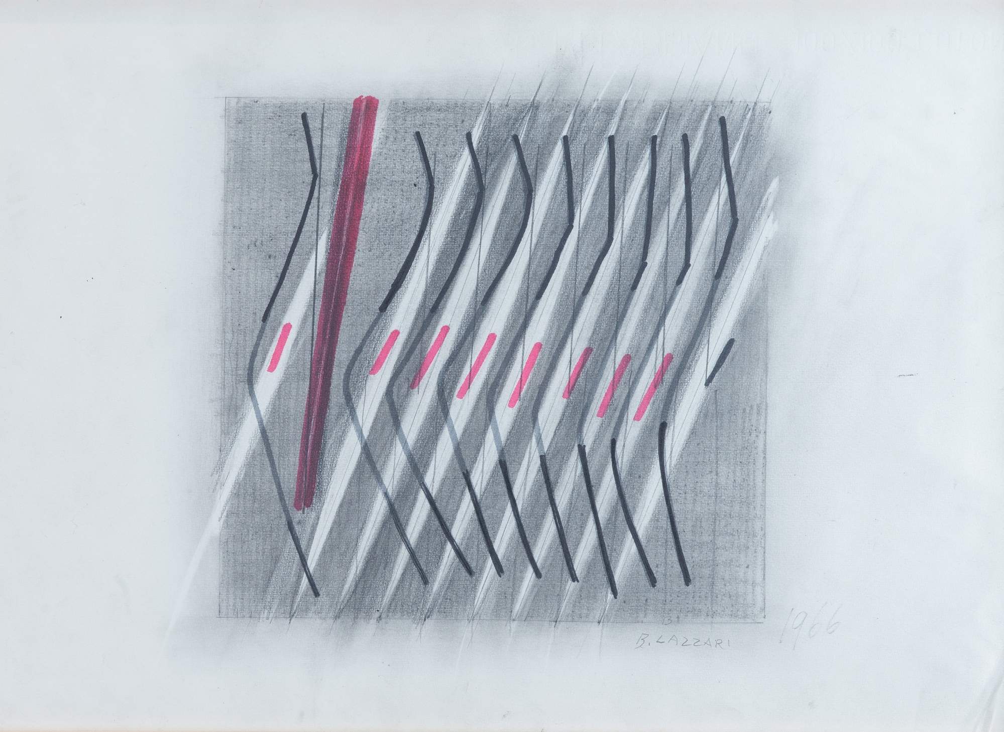 BICE LAZZARI (Venezia 1900 – Roma 1981) “Senza titolo”, 1966. Tecnica mista su carta. Cm 34x51,5. Opera rectoversa. Opera firmata e datata in basso a destra B. Lazzari 1966.