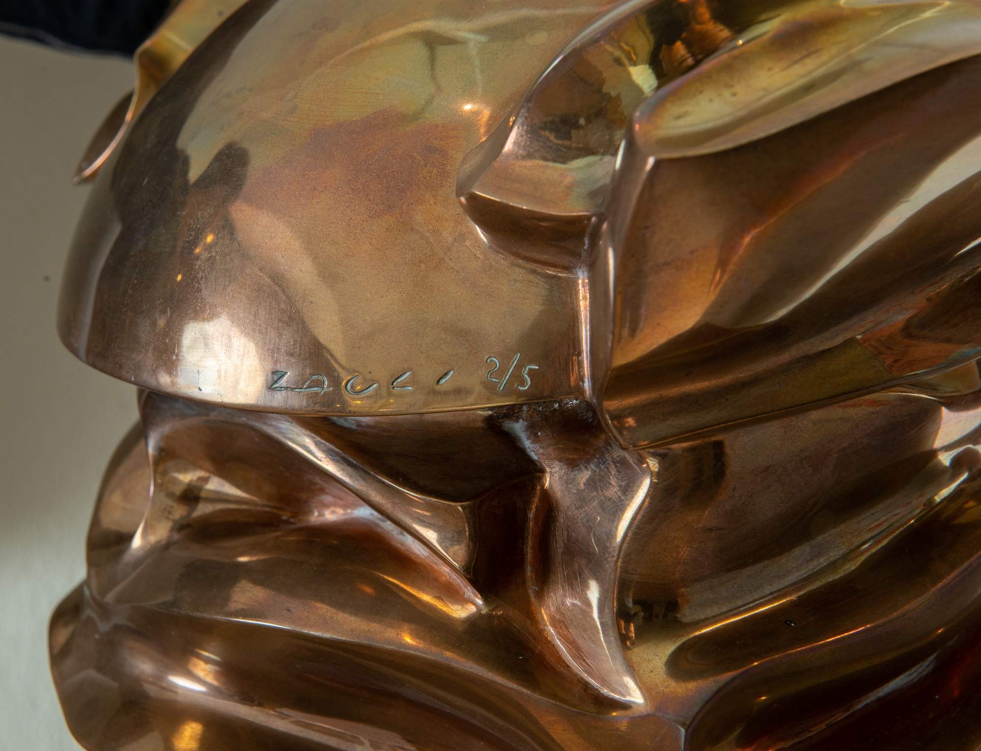 CARLO ZAULI (Faenza 1926 – 2002) “Sfera”. Scultura in bronzo. H cm 27; Ø cm 38. Opera firmata alla base Zauli. Reca numeri di tiratura 2/5.