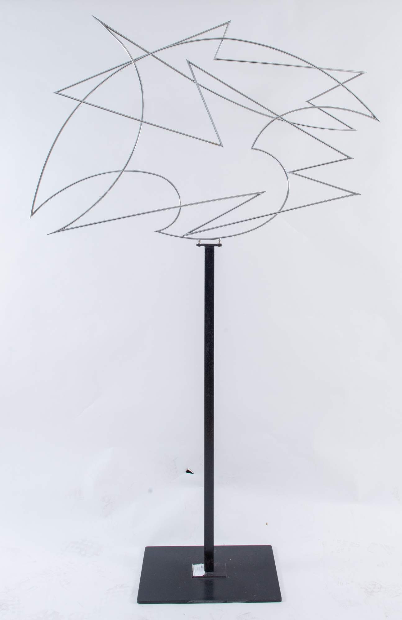 GIACOMO BALLA (Torino 1871 – Roma 1958) “Linea di velocità + forma rumore”, 1913-1914. Ottone cromato ghiacciato da mm 8. Cm 78x115. Esemplare 3/9 (pezzo unico). Opera realizzata su disegno originale del maestro. Reca punzone dell’artista G.B., il punzone della Galleria Obelisco e il numero dell’esemplare 3/9. Opera accompagnata da autentica su fotografia a firma degli eredi Lucia Balla, Elisabetta Balla, il direttore della Galleria Obelisco e firma del notaio Antonino Fabrizio. Esposizioni: Balla a Villa Borghese, 29/11/2018 - 17/02/2019, Museo Carlo Bilotti Aranciera di Villa Borghese. Bibliografia: catalogo della mostra Balla a Villa Borghese, ed. the Boga Foundation.