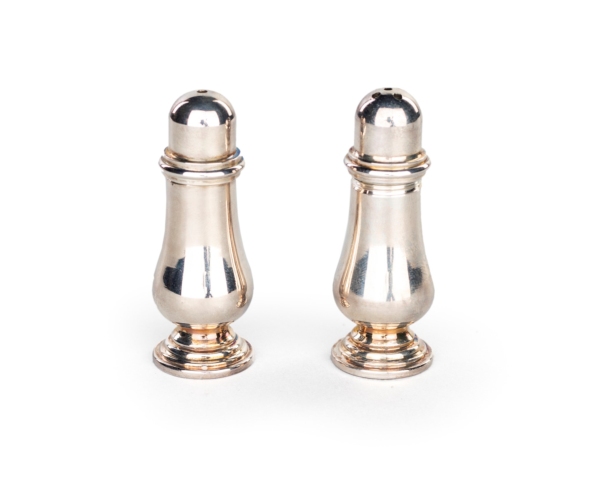 Set sale e pepe Sambonet - in ottone placcato argento - altezza cm 5,5