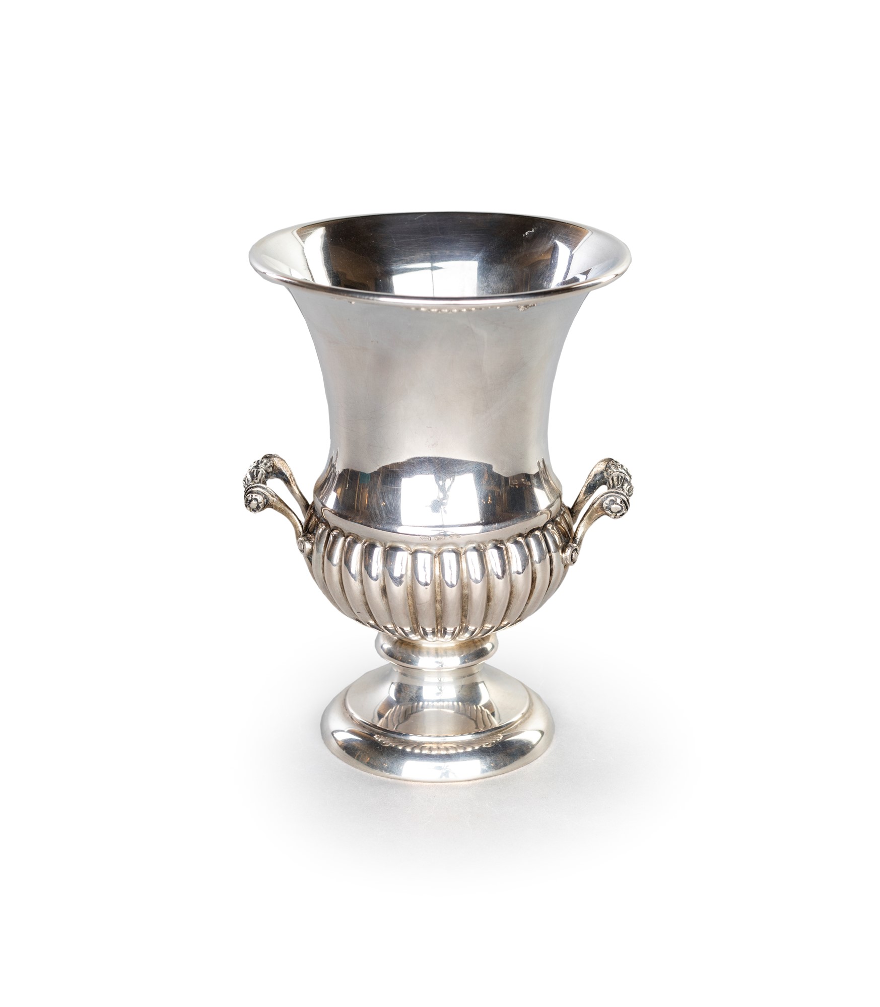 Vaso a cratere in argento - con baccelli e manici su piede circolare -...