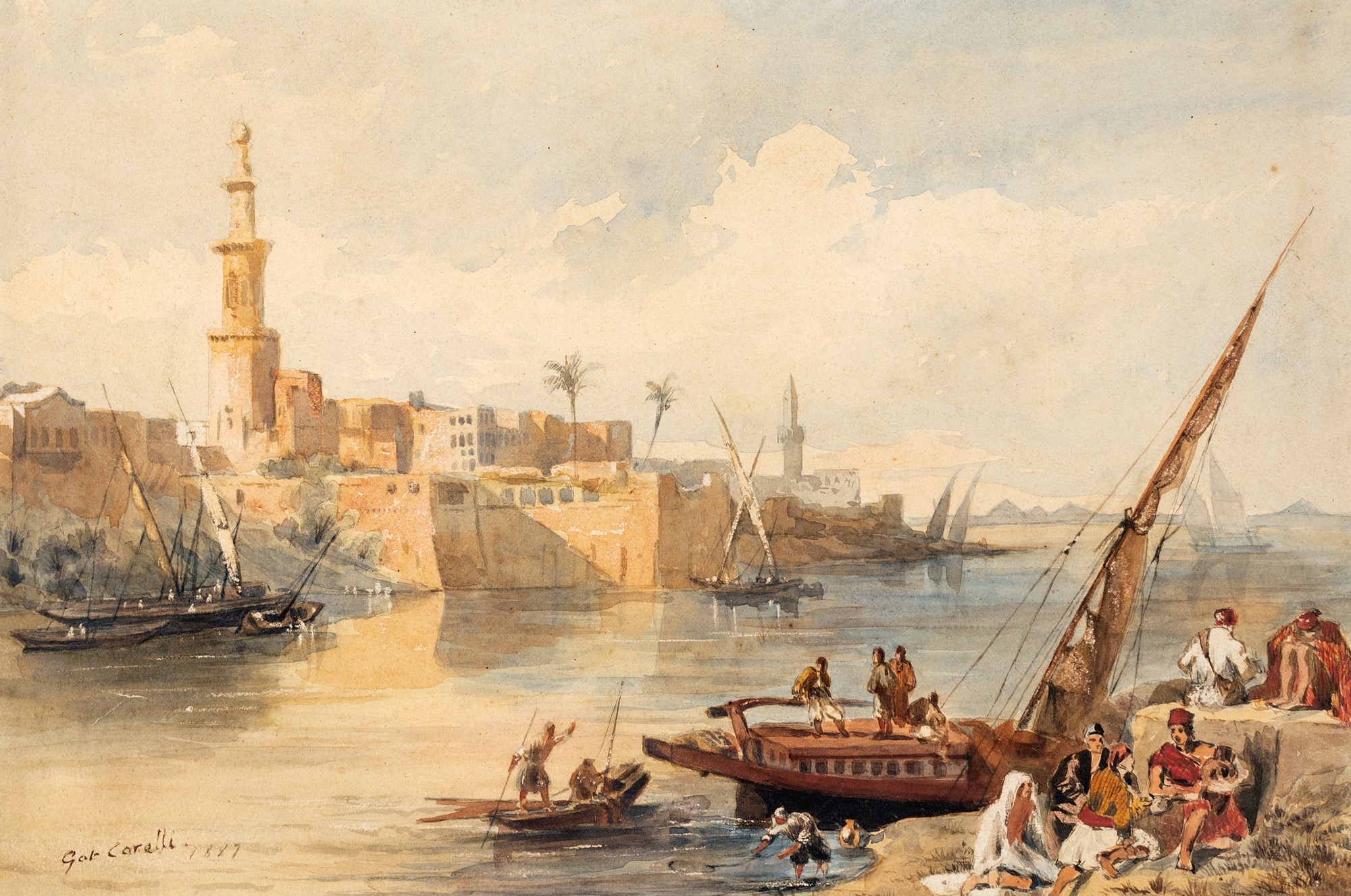 Gabriele Carelli - Veduta costiera orientale - Firmato e datato in basso a sinistra: Gab. Carelli 1887 - acquerello su carta - cm 30x45
