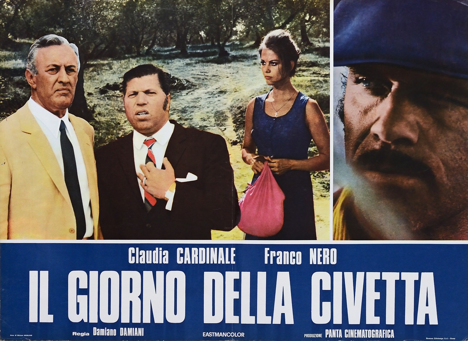 DAMIANI DAMIANO (1922 - 2013) Il Giorno della Civetta. 1968. Poster. Cm 65,00 x 46,00. Poster manifesto originale vintage. Tratto dal libro di Leonardo Sciascia. Condizione A.