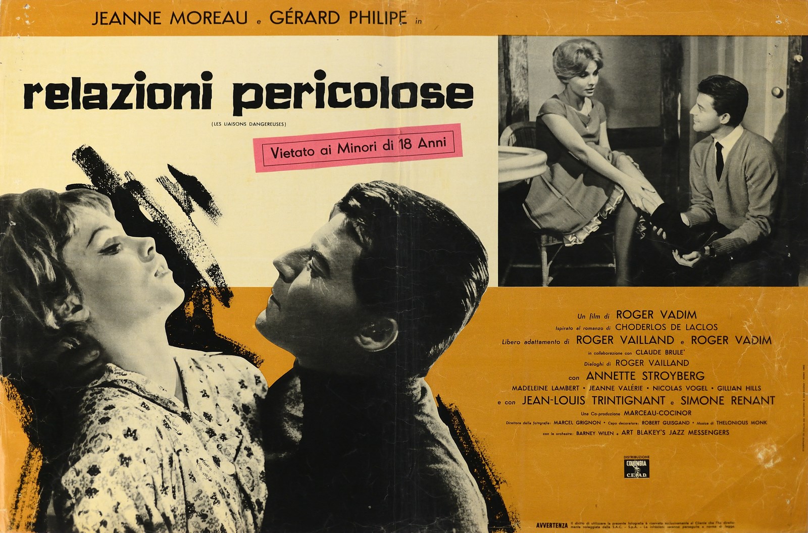VADIM ROGER (1928 - 2000) Le Relazioni pericolose. (Les liaisons dangereuses). 1959. Poster. Cm 67,50 x 46,00. Poster vintage originale. Edizione italiana. Condizione B.