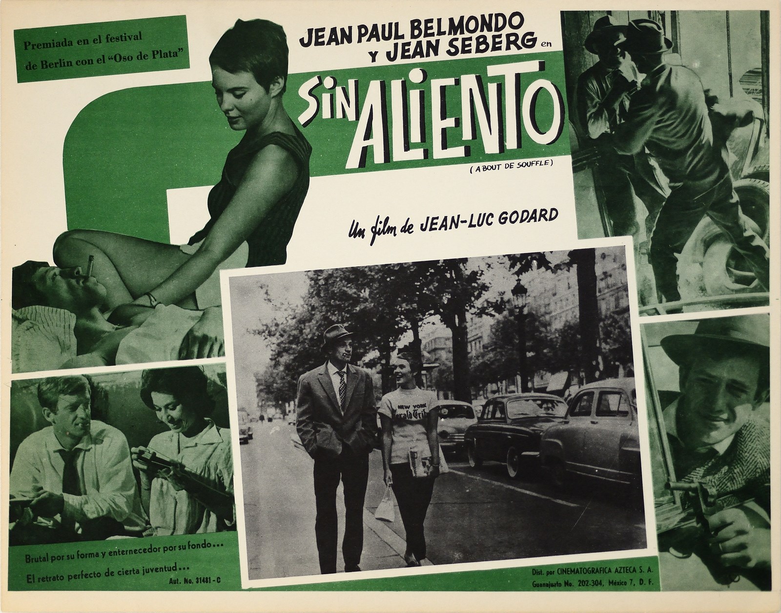 GODARD JEAN LUC (n. 1930) Sin aliento. (A' bout de souffle. Fino all'ultimo respiro). 1960. Poster. Cm 41,00 x 32,00. Poster vintage originale. Edizione spagnola. Condizione A.