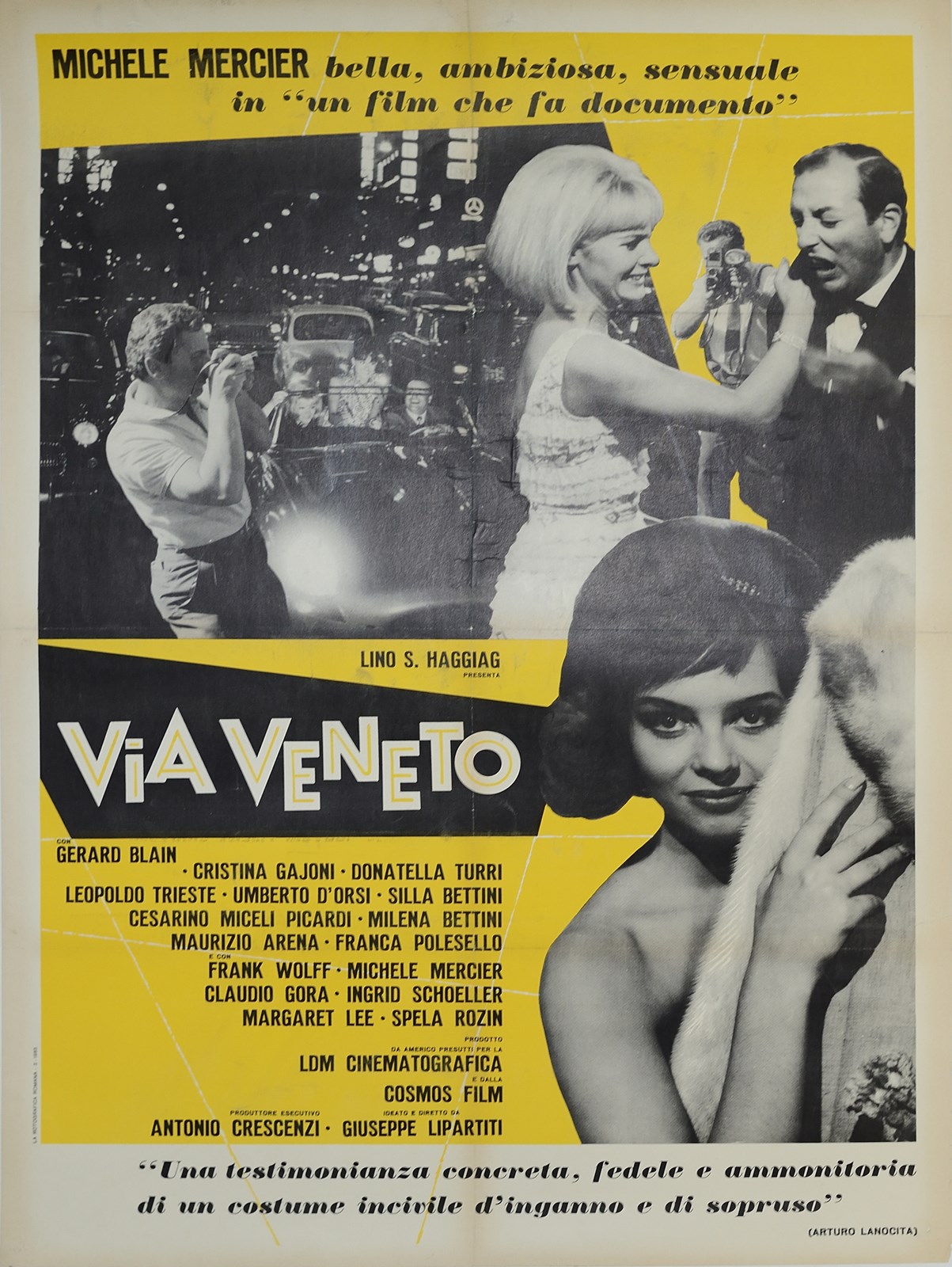 HAGGIAG LINO S. Via Veneto. 1963. Poster. Cm 101,00 x 140,00. Poster cinematografico vintage originale prima edizione 1965. Condizione A.