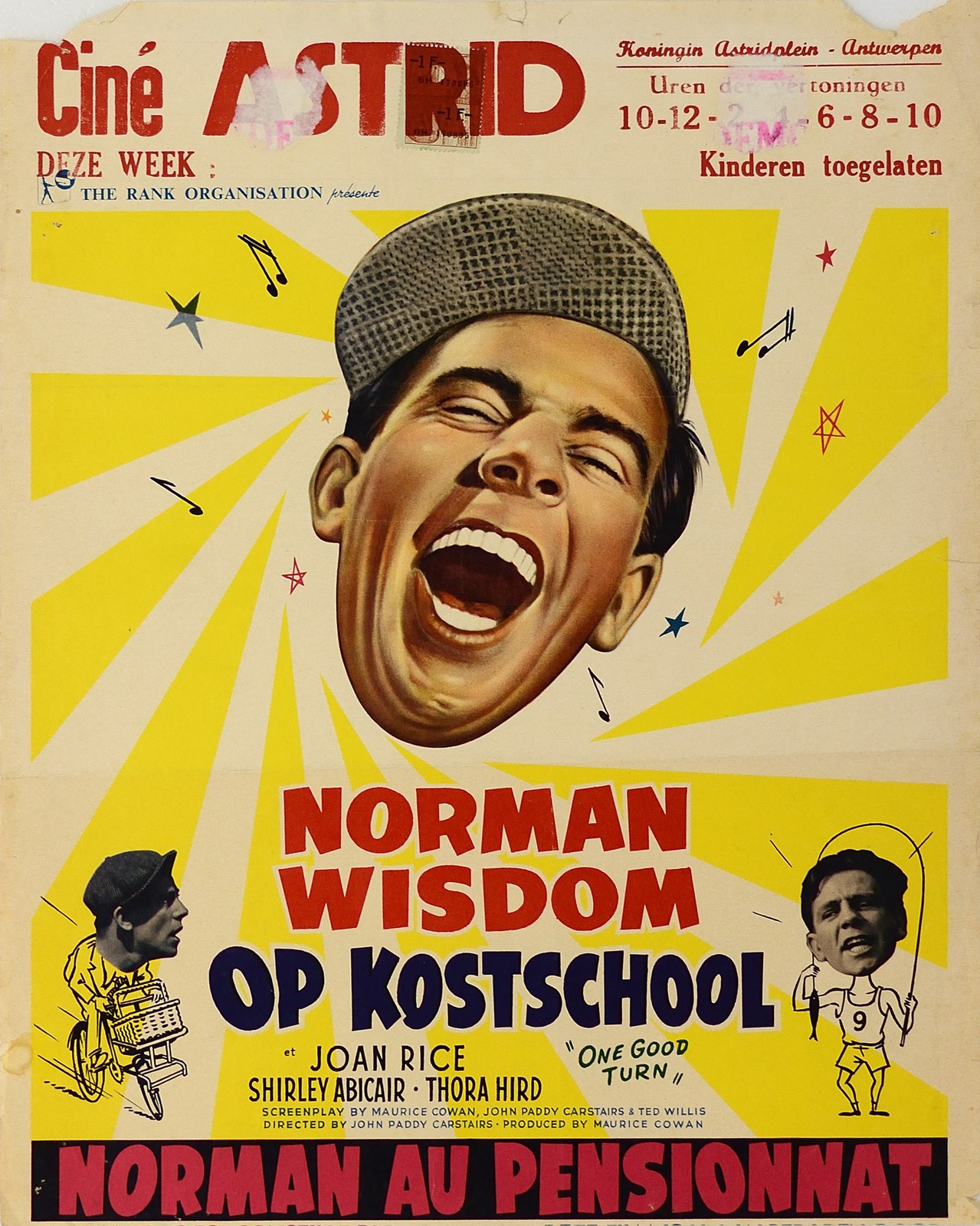 WISDOM NORMAN (1915 - 2010) Op Kostschool. Norman au pensionnat. 1955. Poster. Cm 35,00 x 45,00. Poster vintage cinematografico originale. Noto comico inglese. Belgian edition. Condizione B.