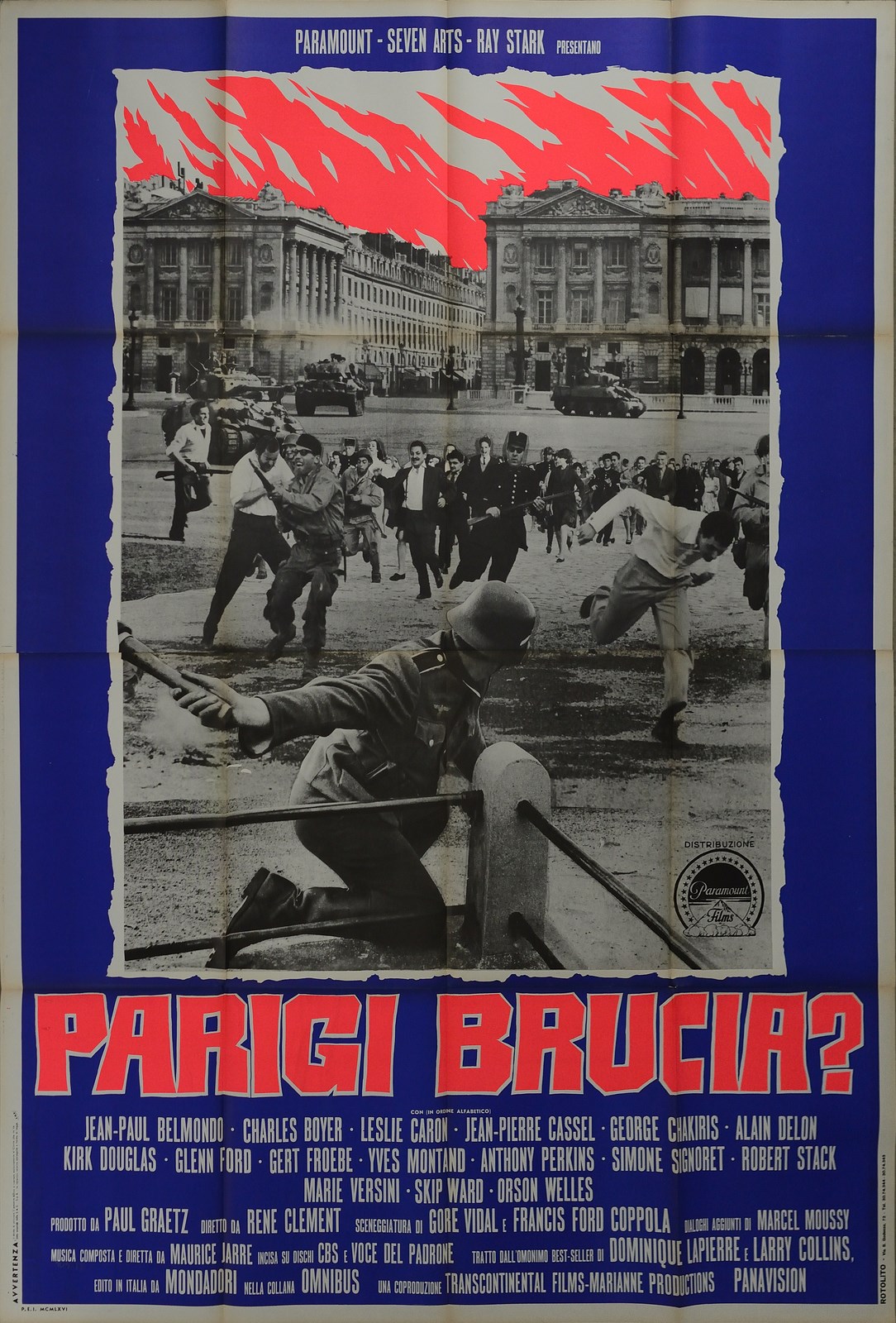 CLEMENT RENE' (1913 - 1996) Parigi brucia? (Paris brule-t-il?). 1966. Poster. Cm 200,00 x 140,00. Poster vintage cinematografico originale. Prima edizione italiana. Condizione A.