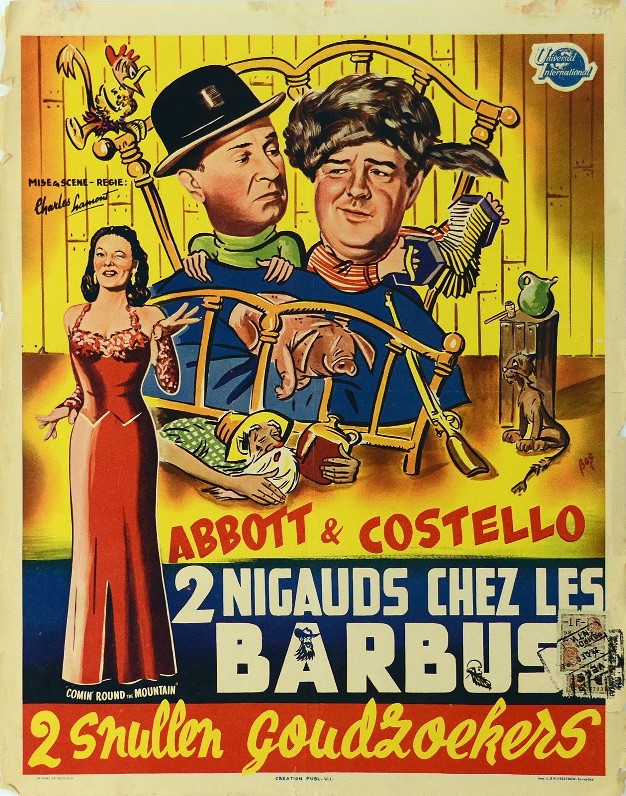 ABBOTT & COSTELLO 2 nigauds chez le barbus. Poster. Cm 36,00 x 46,00. Poster vintage originale. Edizione belga. Condizione A.