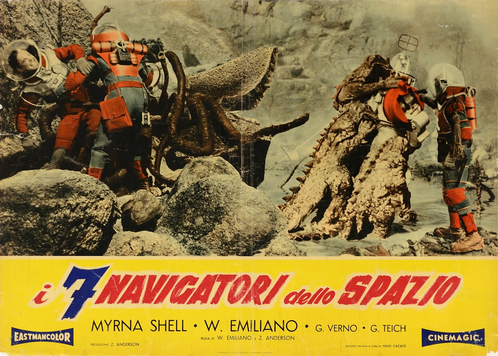 KLUSANCEV PAVEL (1910 - 1999) I 7 navigatori dello spazio. 1962. Poster. Cm 67,50 x 47,00. Poster cinematografico vintage originale. Raro film sovietico di fantascienza. Edizione italiana. Condizione A meno meno.