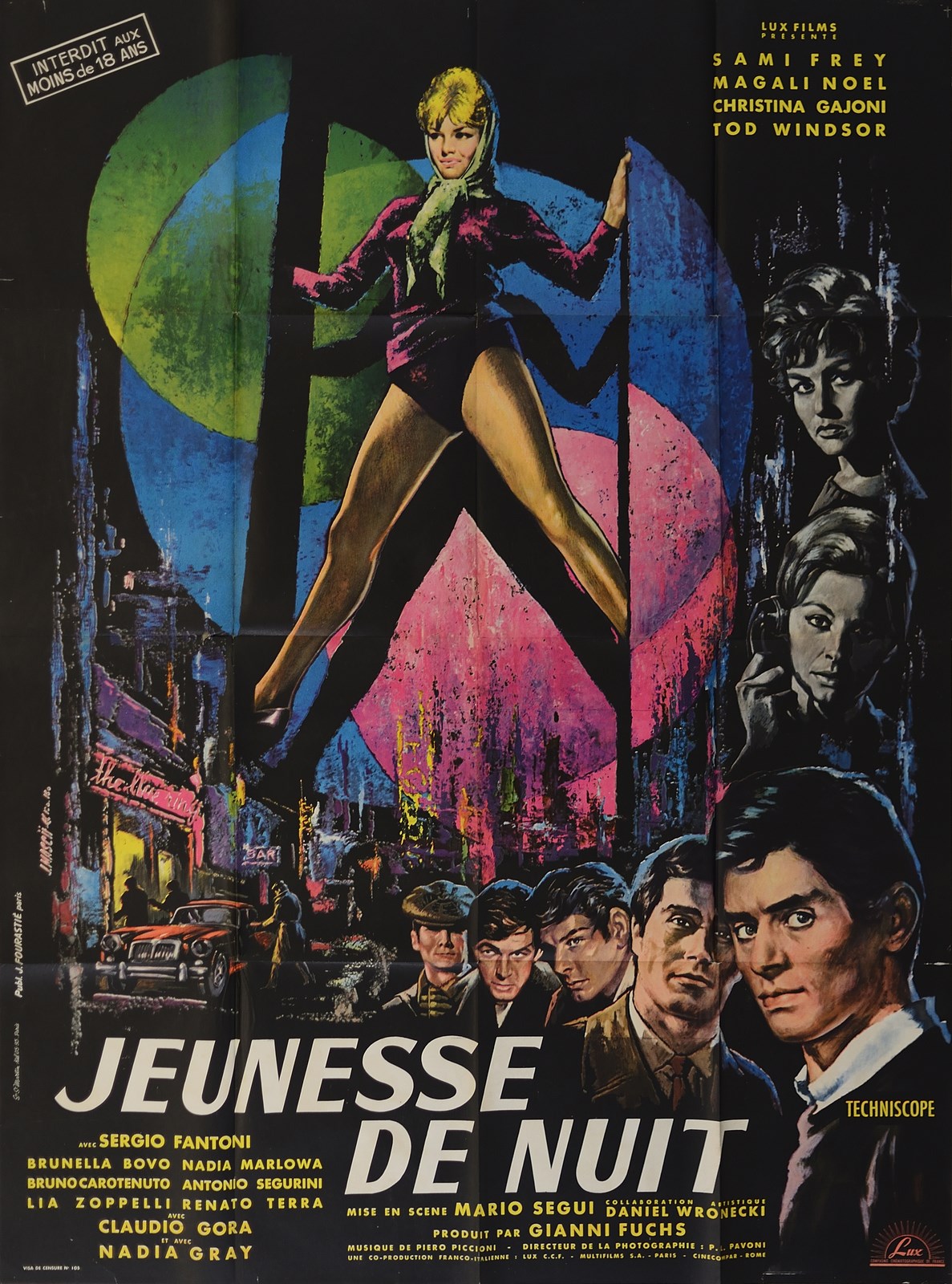 SEQUI MARIO (1913 - 1992) Jeunesse de nuit. (Gioventù di notte). 1961. Poster. Cm 118,00 x 160,00. Poster cinematografico vintage originale. Artworks MASCII . Condizione A meno.
