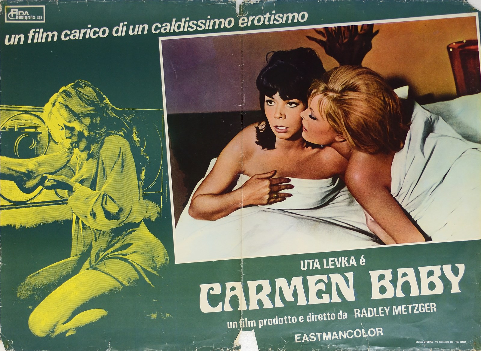 METZGER RADLEY (1929 - 2017) Carmen Baby. 1967. Poster. Cm 69,00 x 49,00. Poster vintage cinematografico originale. Cartella fotobusta di 2. Condition C.