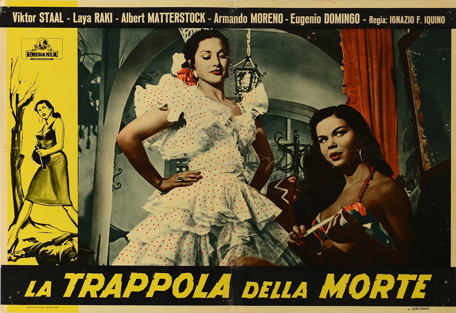 IQUINO IGNAZIO F. (1910 - 1994) La trappola della morte. 1959. Poster. Cm 67,50 x 45,50. Poster cinematografico originale vintage. Condizione A meno.