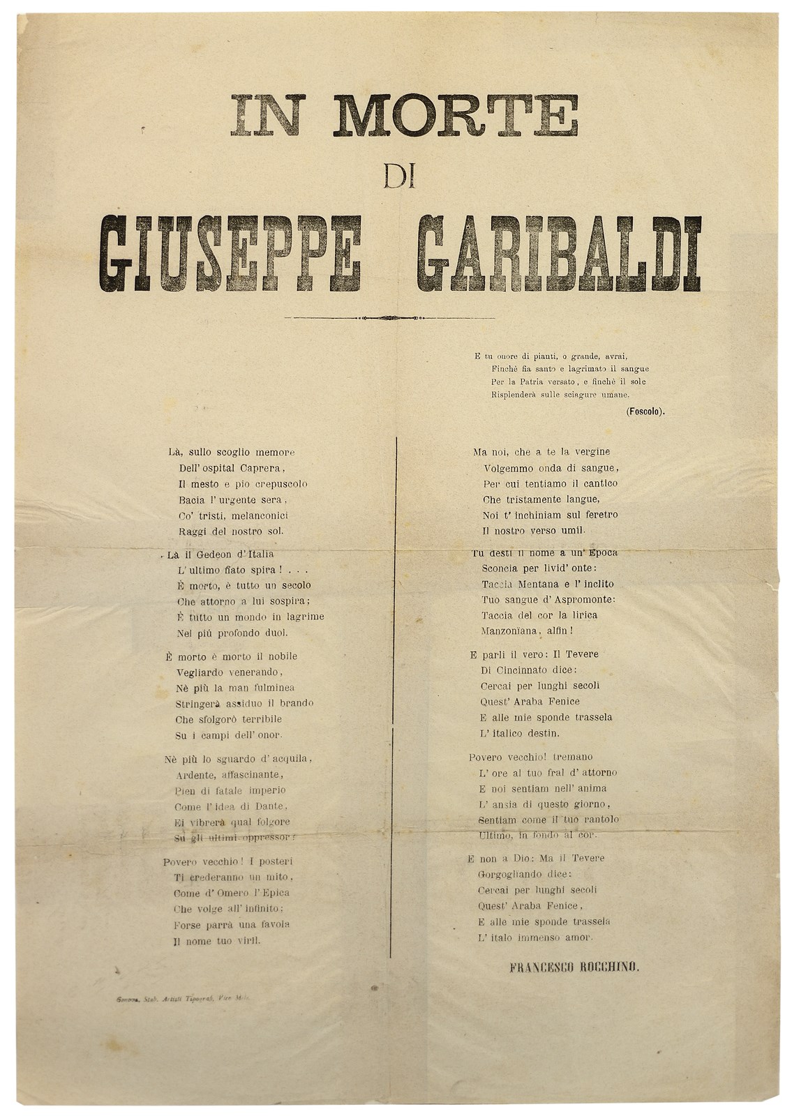 AUTORE NON IDENTIFICATO - In morte di Giuseppe Garibaldi.
