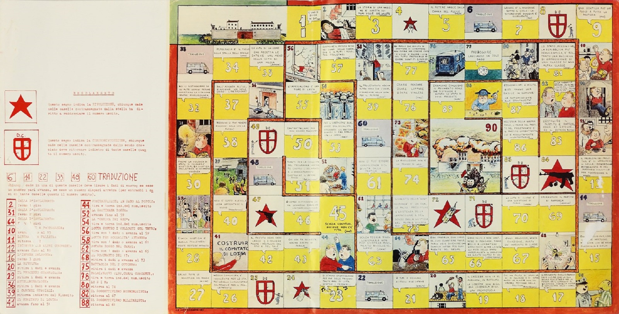 AUTORE NON IDENTIFICATO Gioco dell'Oca. Poster. Cm 70,00 x 33,00. Rarissimo gioco dell'Oca della Rivoluzione attribuito ad un gruppo eversivo della sinistra extraparlamentare italiana. Stampa clandestina. Condizione A.
