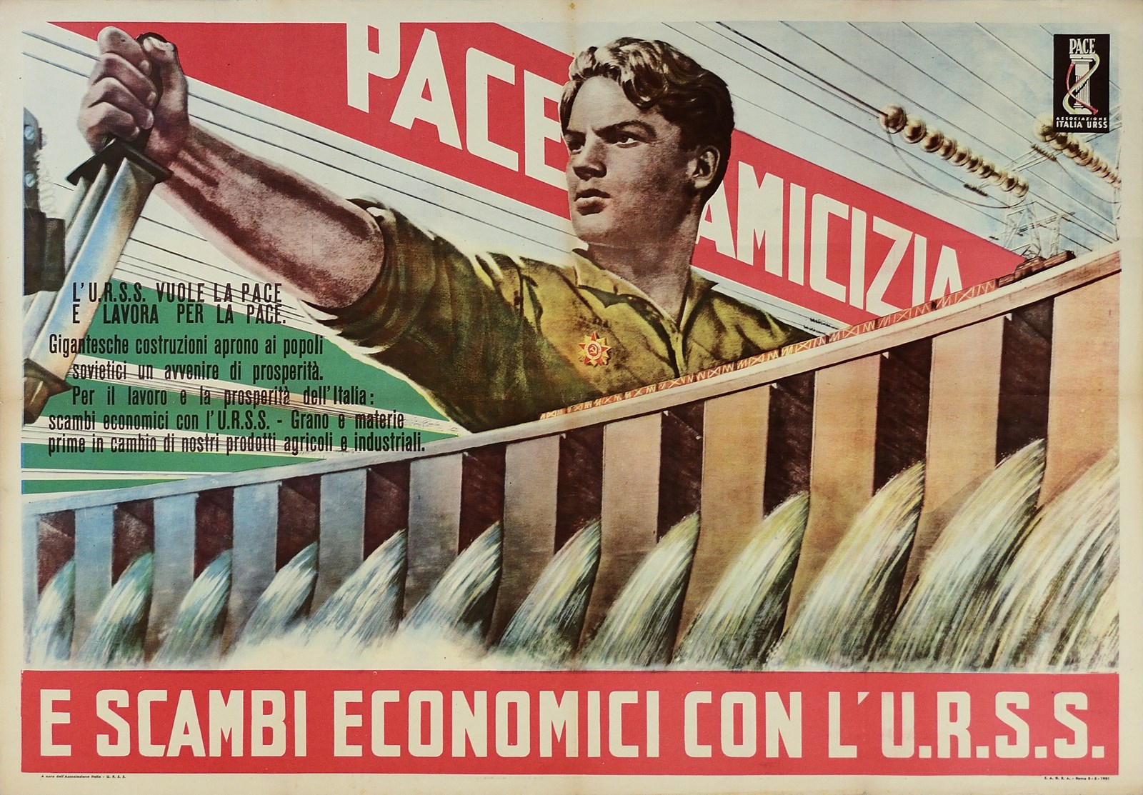 AUTORE NON IDENTIFICATO Scambi economici con l'URSS. Poster. Cm 100,00 x 70,00. Poster vintage originale. Condizione A.