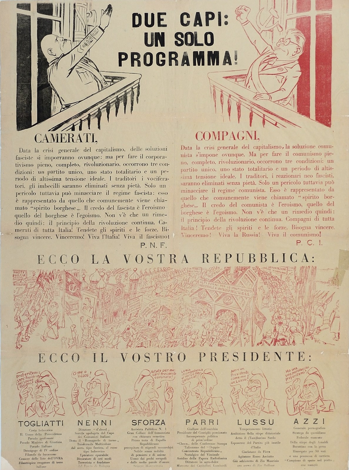 JACOVITTI BENITO (1923 - 1997) Due capi un solo programma. 1950. Poster. Cm 63,00 x 90,00. Poster vintage originale probable accredito opera giovanile di Jacovitti. Condizione A.