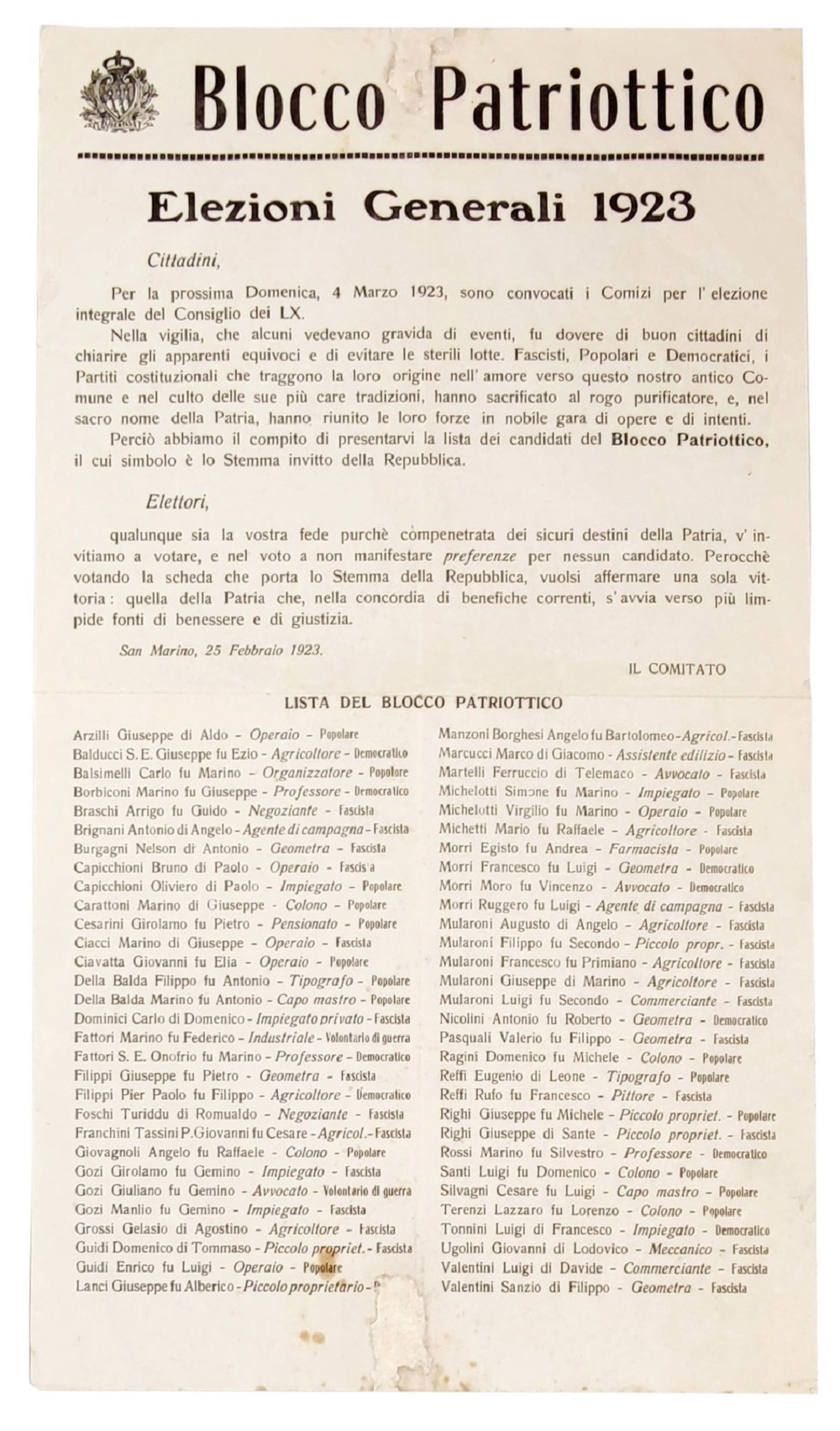 PATRIOTTICO BLOCCO - Elezioni Generali 1923.