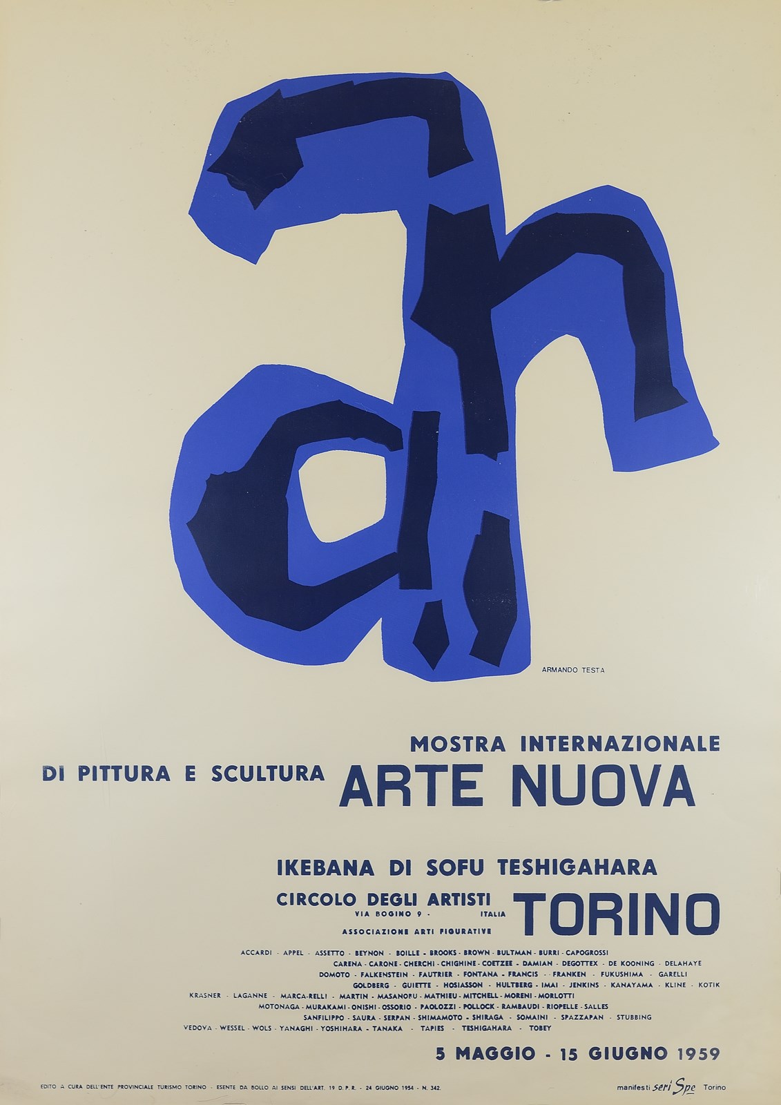TESTA ARMANDO (1917 - 1992) Arte nuova. 1959. Poster. Cm 50,00 x 70,00. Poster manifesto vintage originale mostra internazionale pittura e scultura 1959. Condizione A. Cornice presente