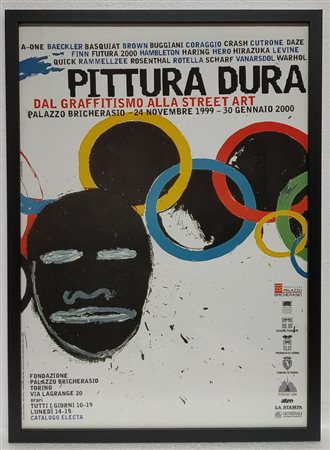 ARTISTI VARI Pittura dura, dal graffitismo alla street art. . 1999. Poster. Cm 70,00 x 100,00. Manifesto mostra Pittura dura dal graffitismo alla street art. Palazzo Bricherasio Torino 1999 - 2000.