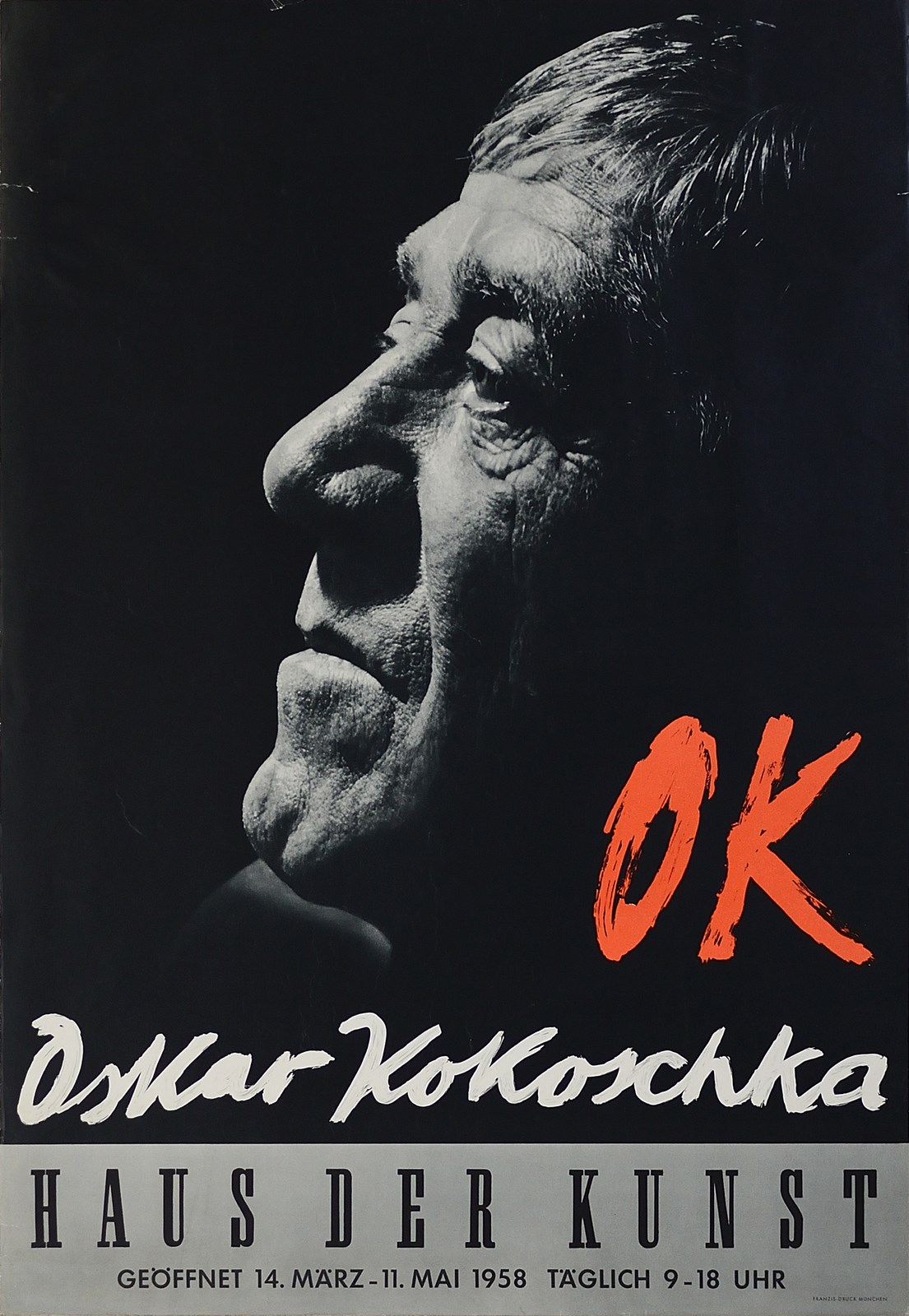 AUTORE NON IDENTIFICATO OK Kokoscka. 1958. Poster. Cm 60,00 x 85,00. Poster d'arte vintage originale. Condizione A.
