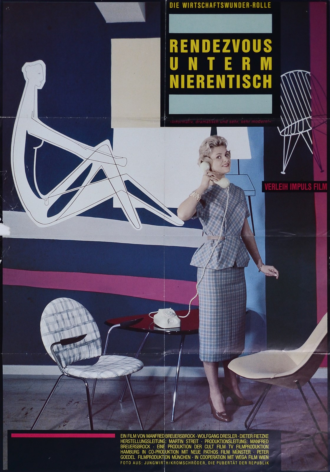 AUTORE NON IDENTIFICATO Rendezvous unterm nierentisch. 1987. Poster. Cm 40,00 x 86,00. Poster originale vintage graphic design anni '50. Condition B meno.