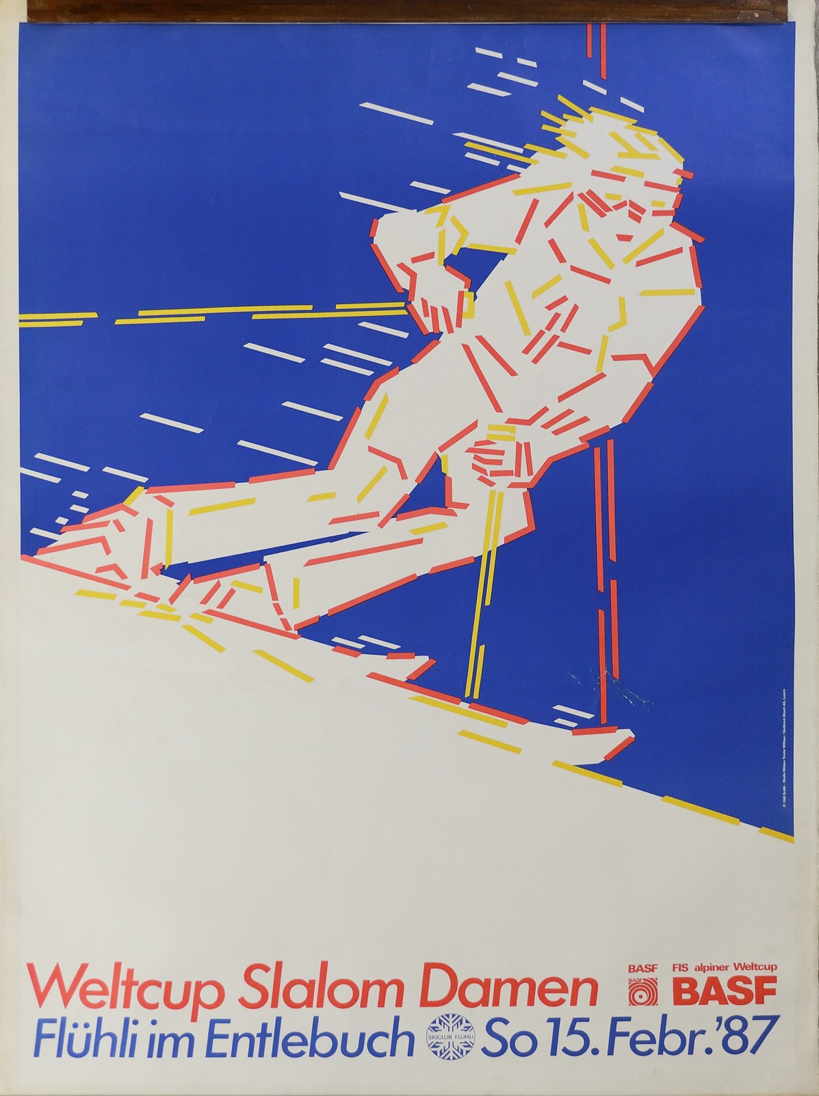 AUTORE NON IDENTIFICATO Coppa del Mondo di Sci. Slalom. 1987. Poster. Cm 95,00 x 130,00. Poster vintage originale. Intelato. Condizone B.