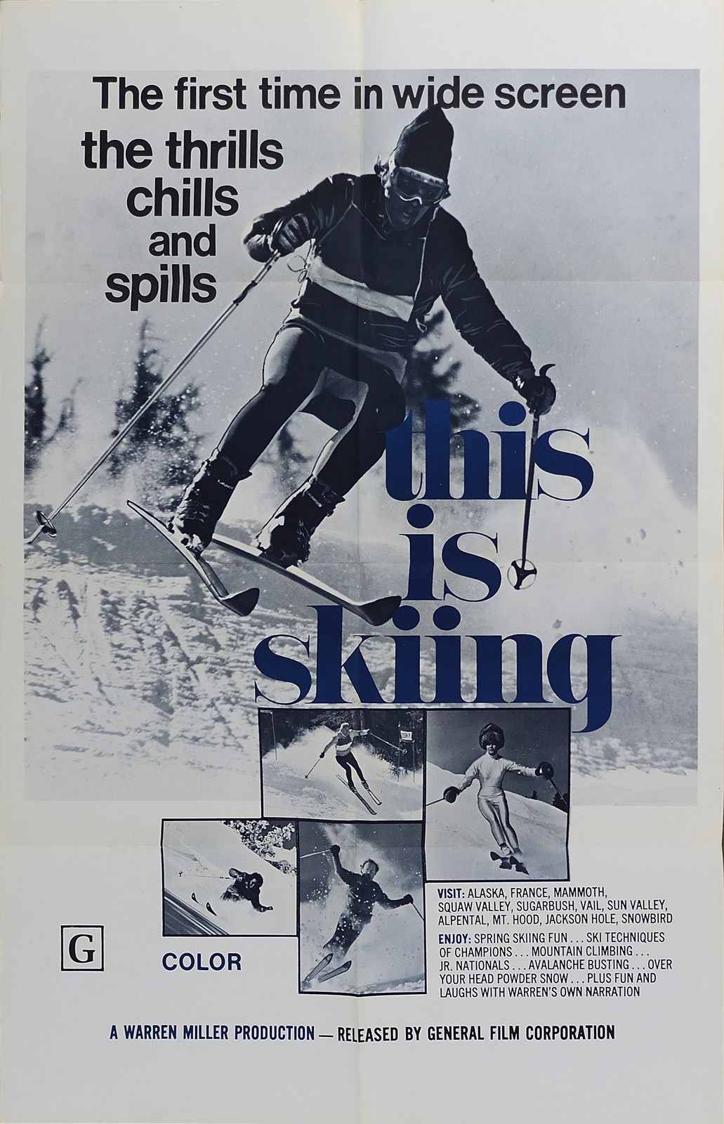 MILLER WARREN (1924 - 2018) This is skiing. 1969. Poster. Cm 70,00 x 106,00. Poster vintage originale docufilm sugli sport invernali. Prima edizione americana. Condizione A.