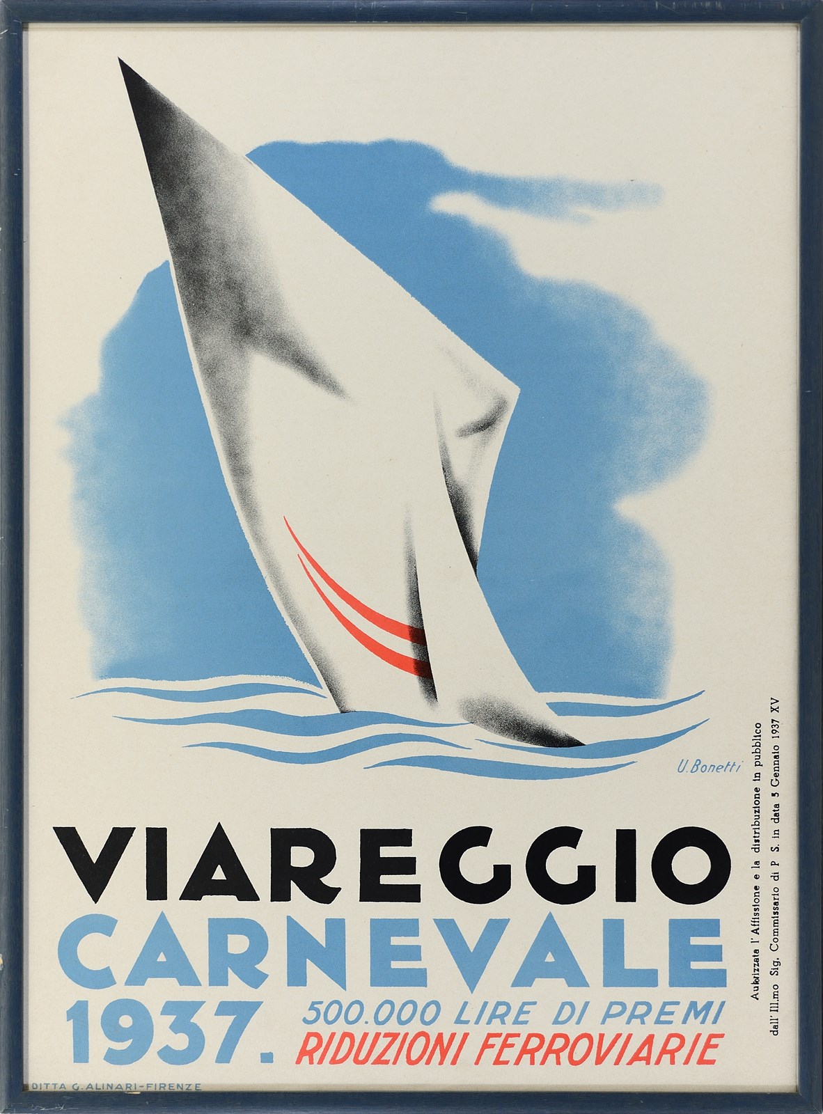 BIANCHI VIRGILIO Carnevale diViareggio. 1937. Poster. Cm 50,00 x 70,00. Poster vintage originale. Condizione A. Cornice presente