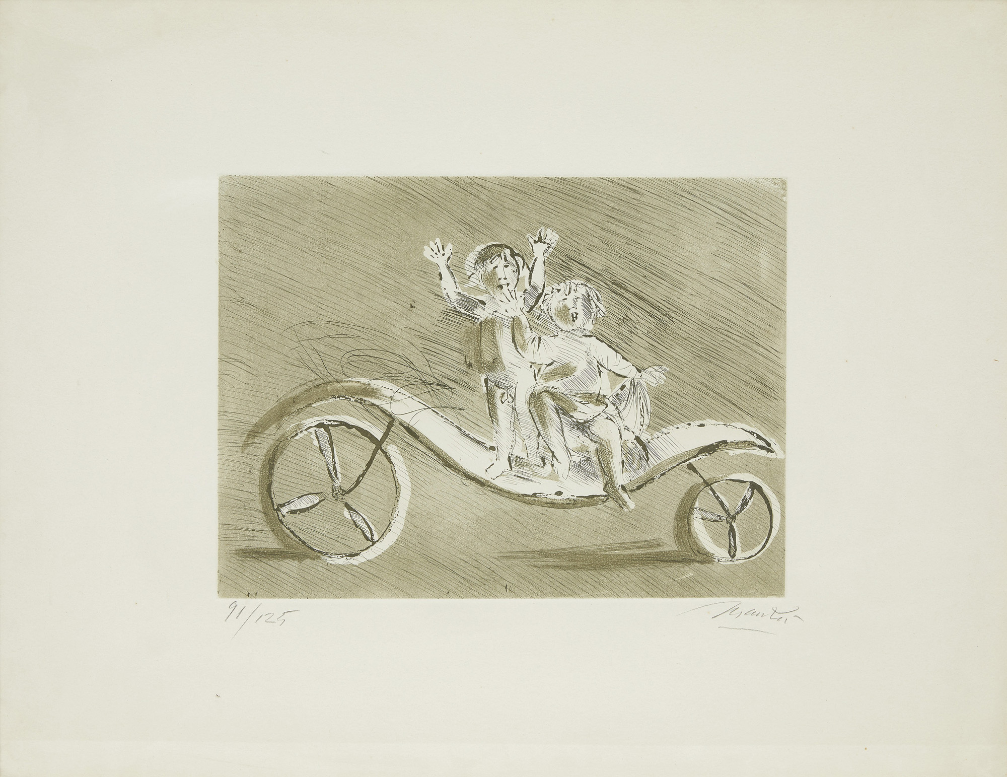 Giacomo Manzù , Milito e Giulia in carrozza verde , Acquaforte e acquatinta su carta
