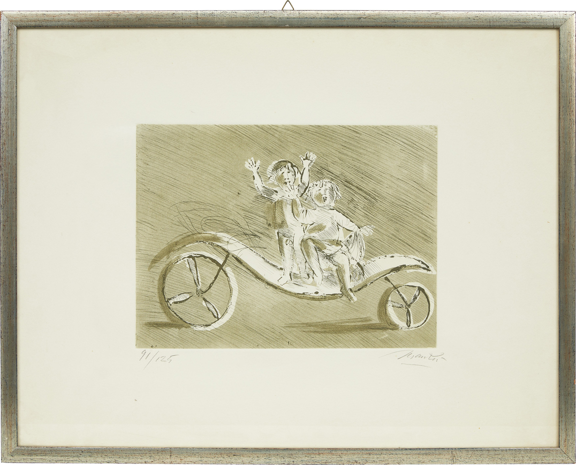 Lotto 14 | Giacomo Manzù , Milito e Giulia in carrozza verde , Acquaforte e acquatinta su carta