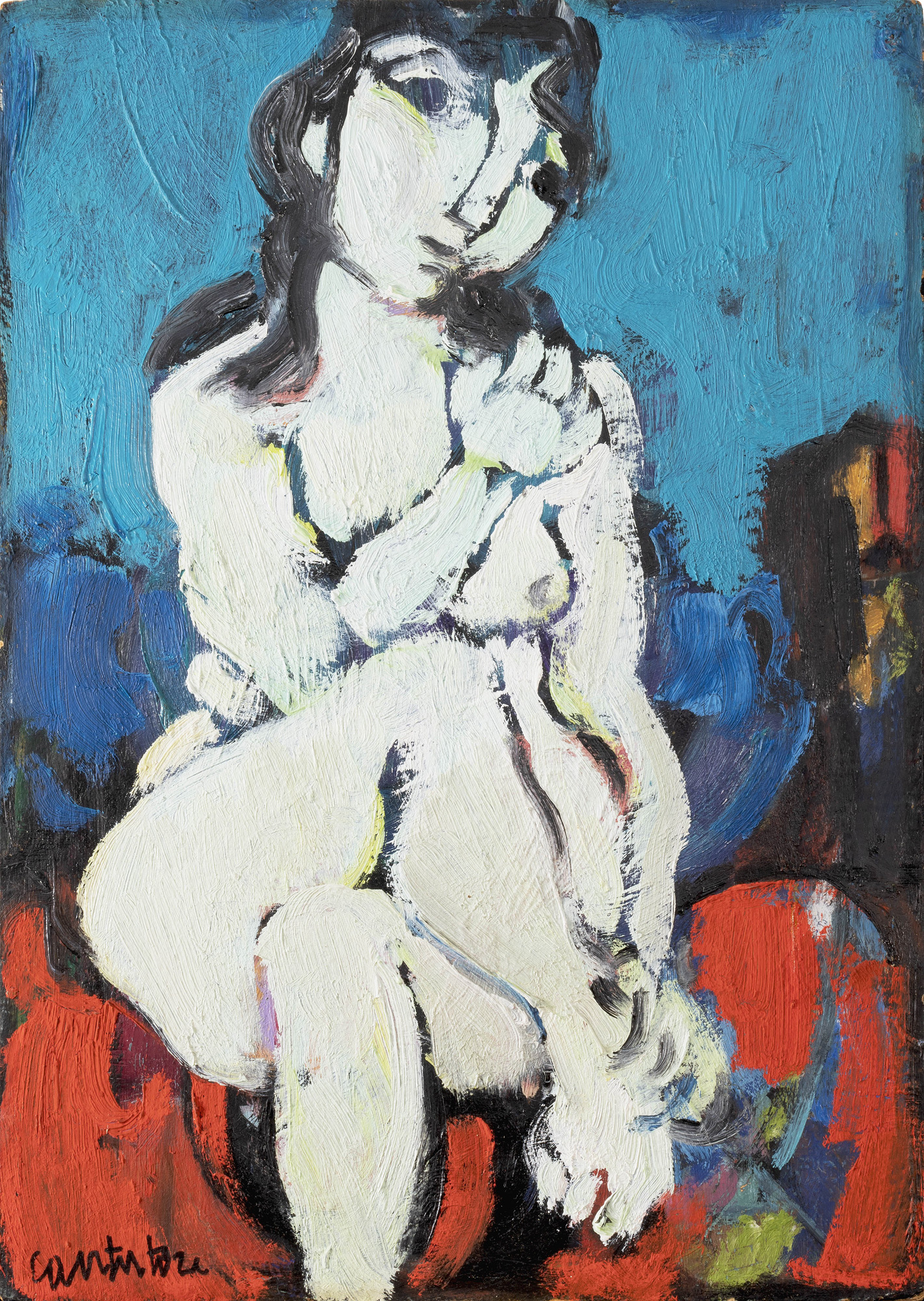 Domenico Cantatore , Figura femminile , Acrilico su cartone