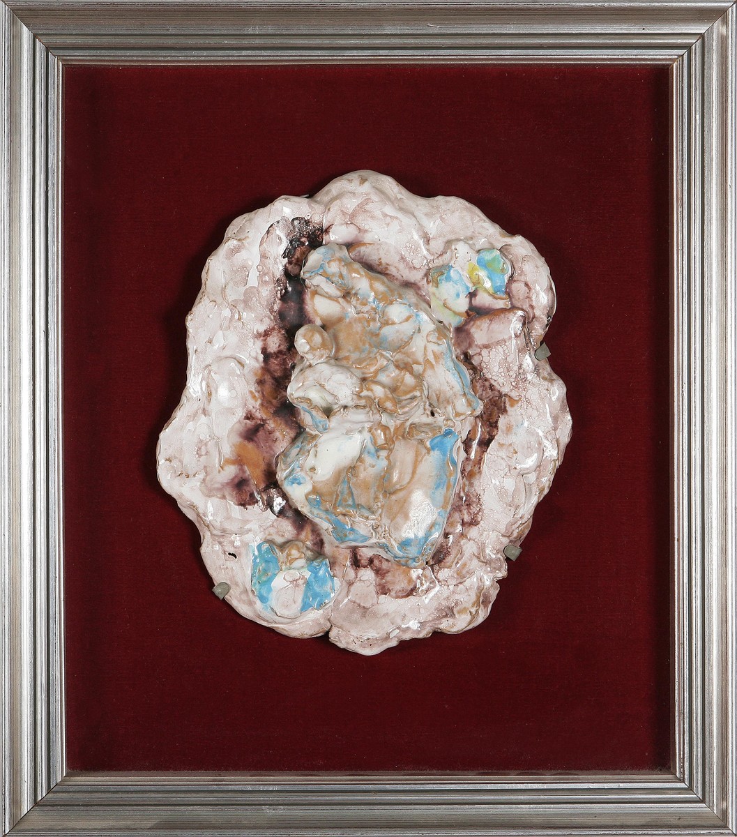 MAFFEI GINA (n. 1946) Madonna col bambino. Ceramica. Cm 24,00 x 28,00. . Cornice presente