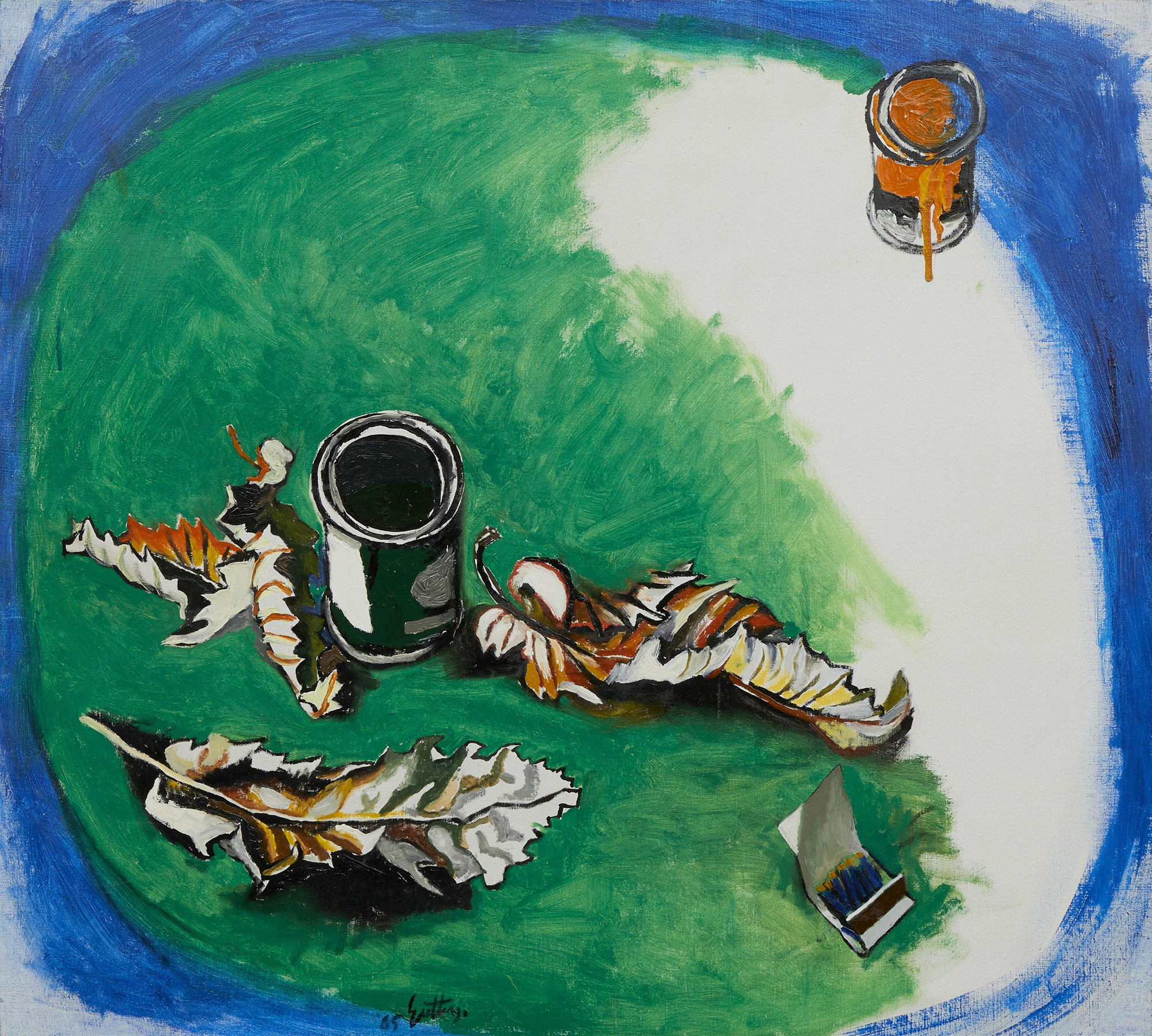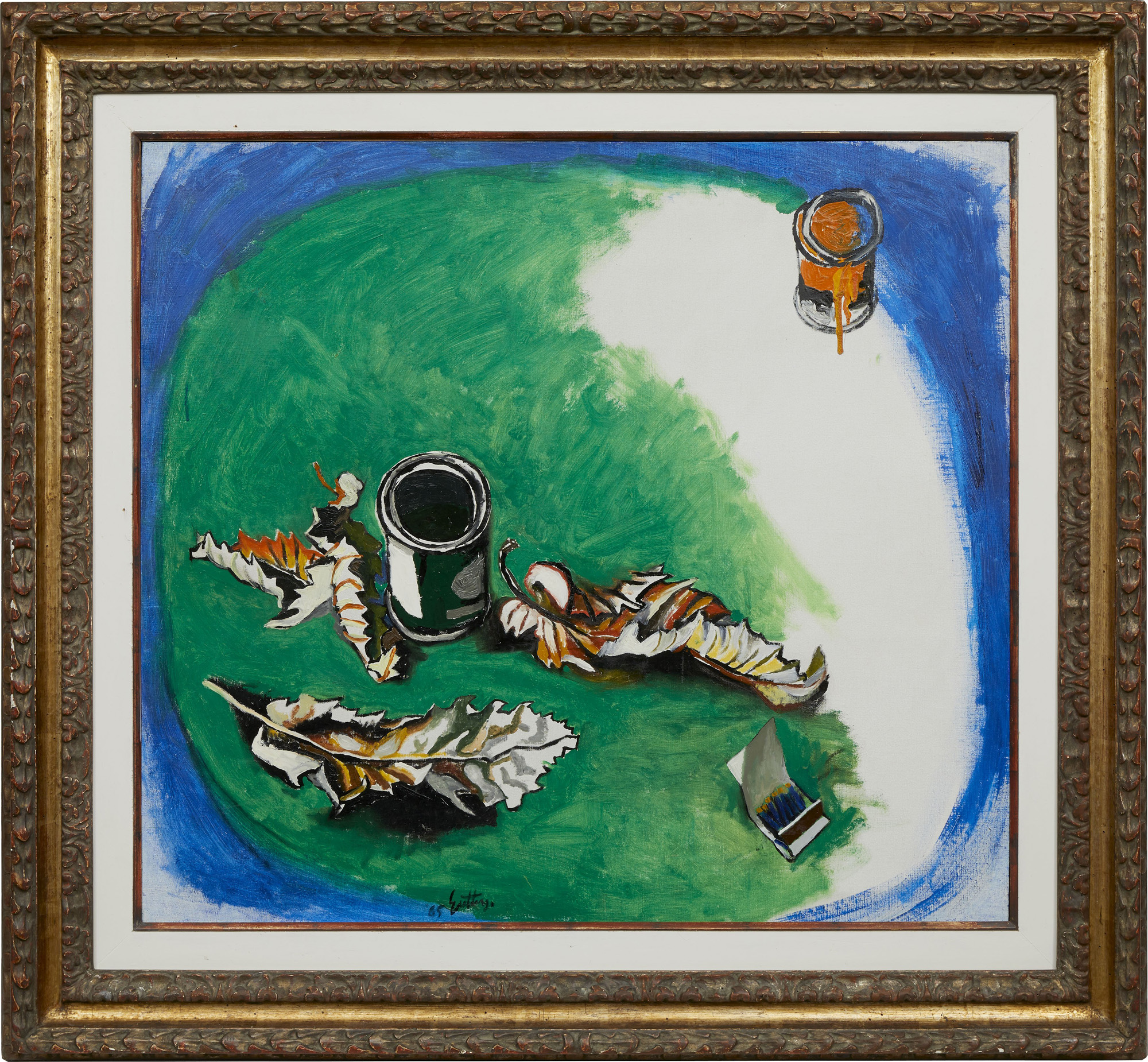 Renato Guttuso , Foglie secche e barattoli , Acrilico su tela