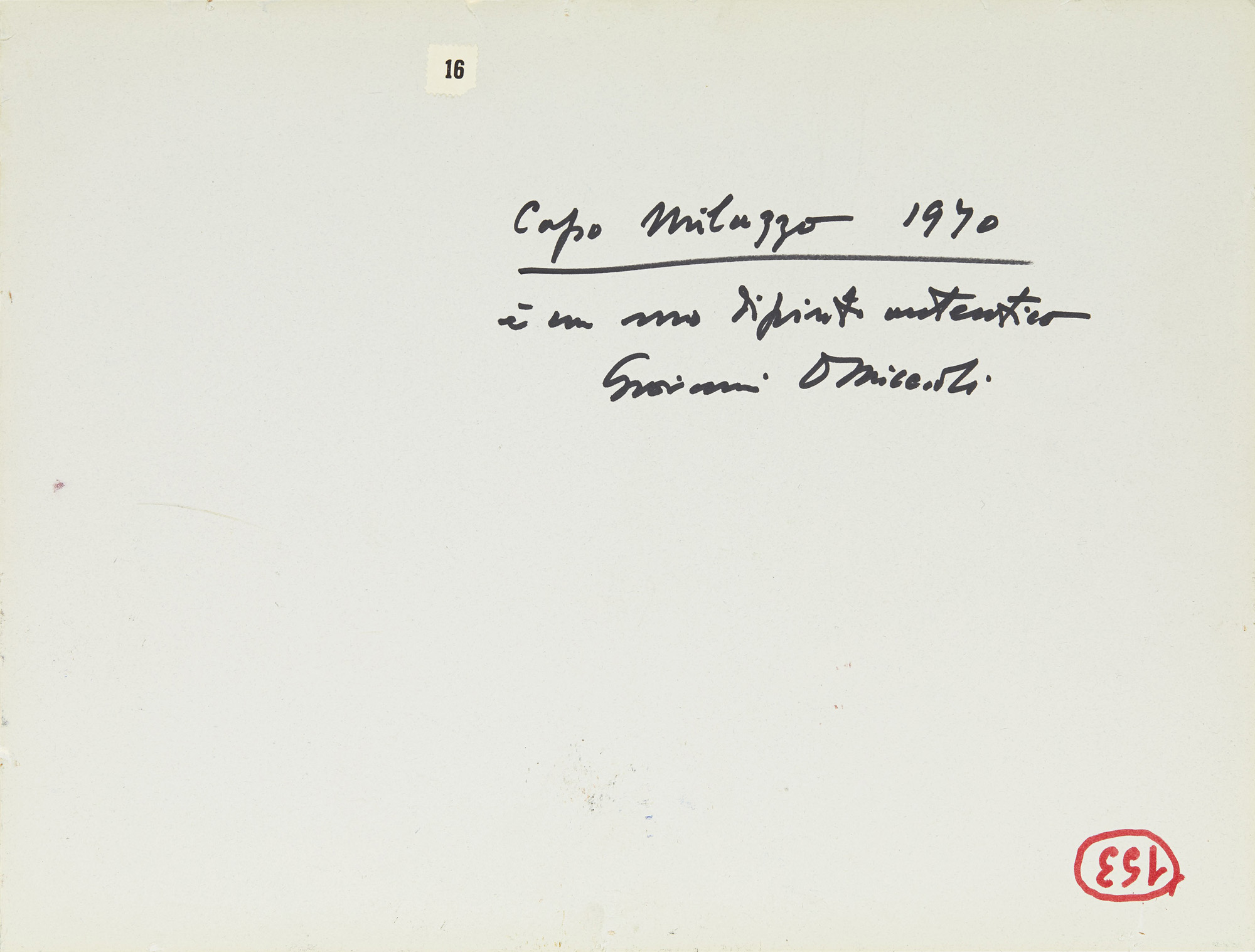 L'autenticità dell'opera è stata confermata verbalmente dalla "Fondazione Omiccioli", Roma nel 2020.