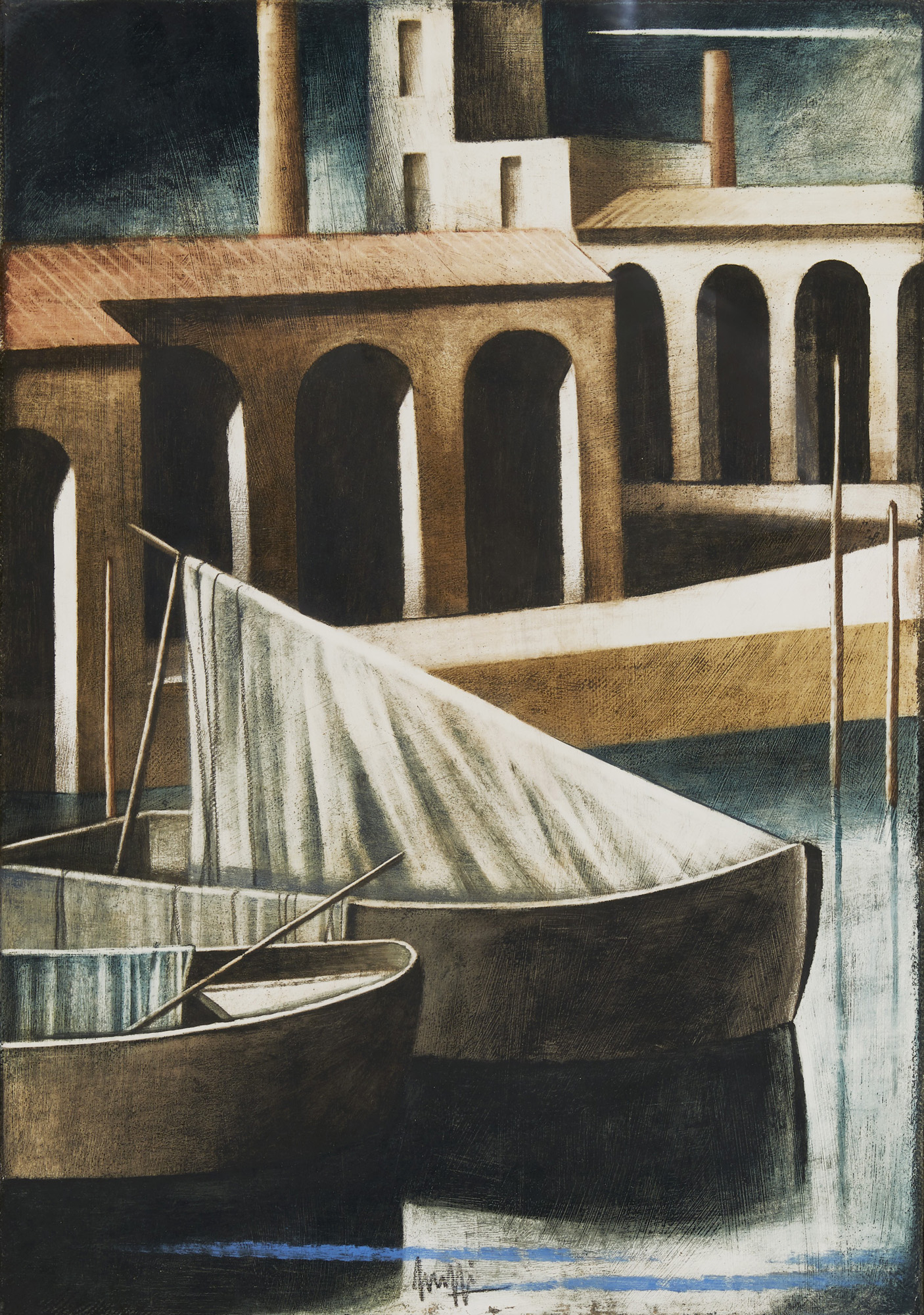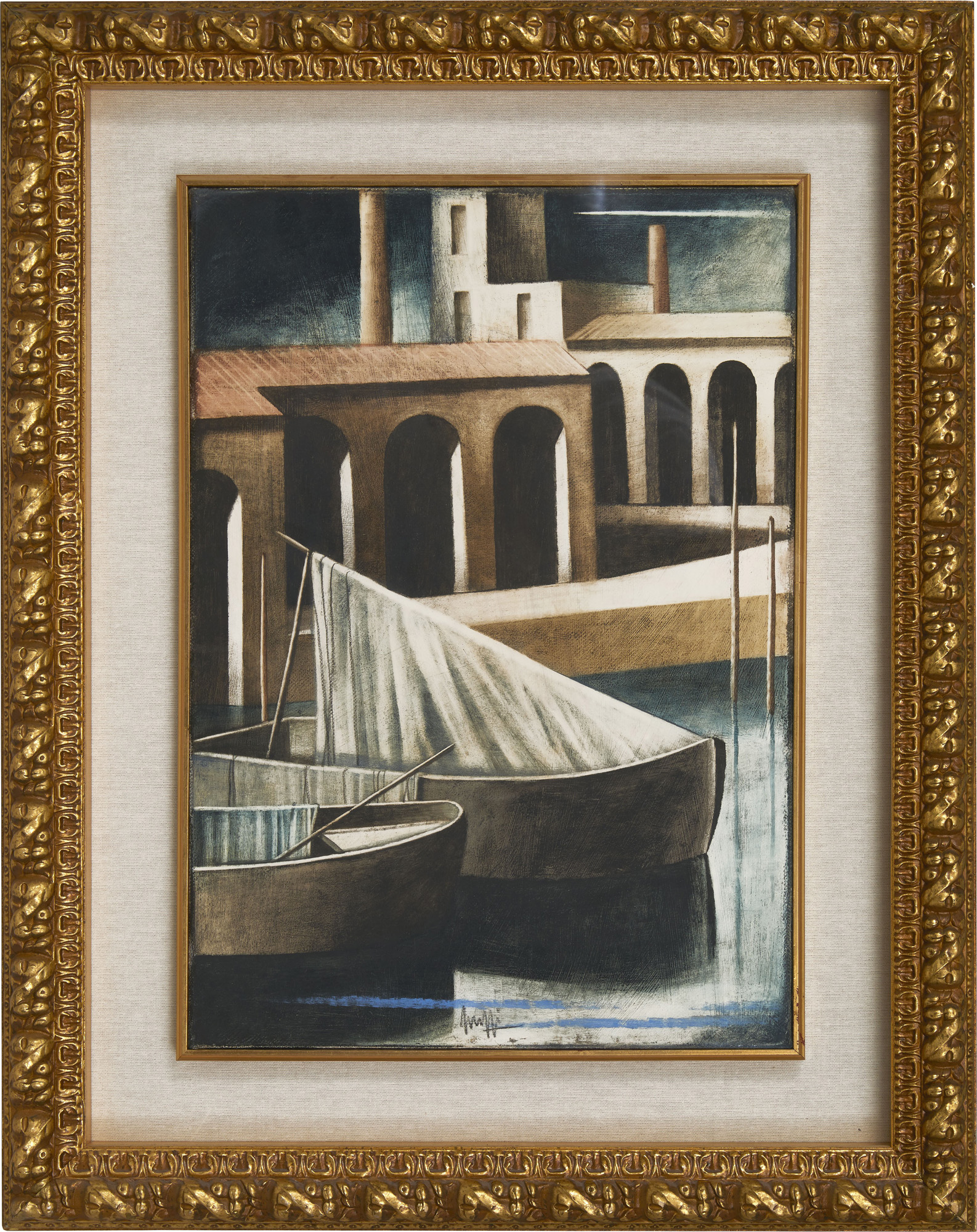 Lotto 160 | Marcello Scuffi , Portocanale , Olio su tela