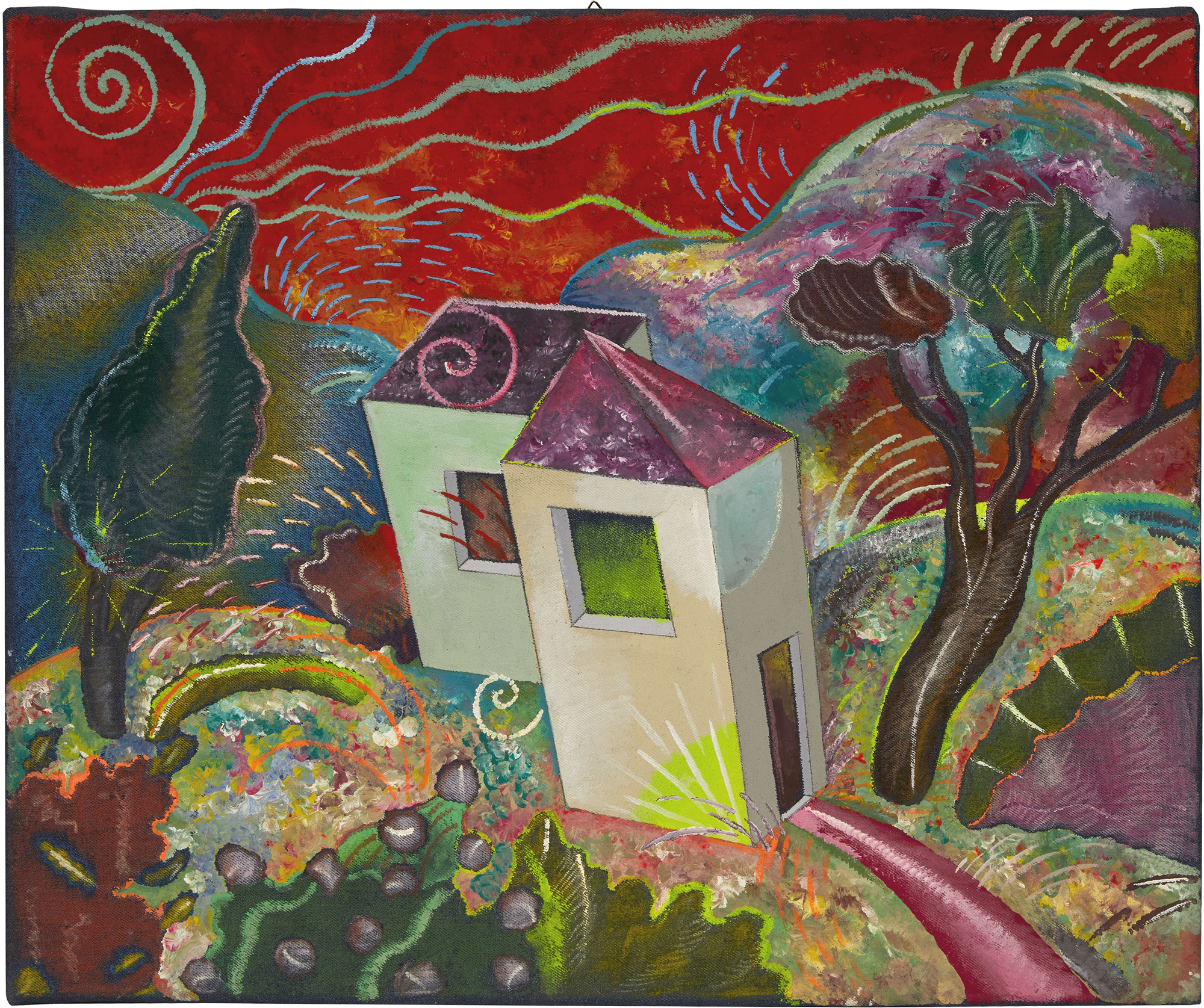 Luca Alinari , Cielo rosso , Tecnica mista su tela