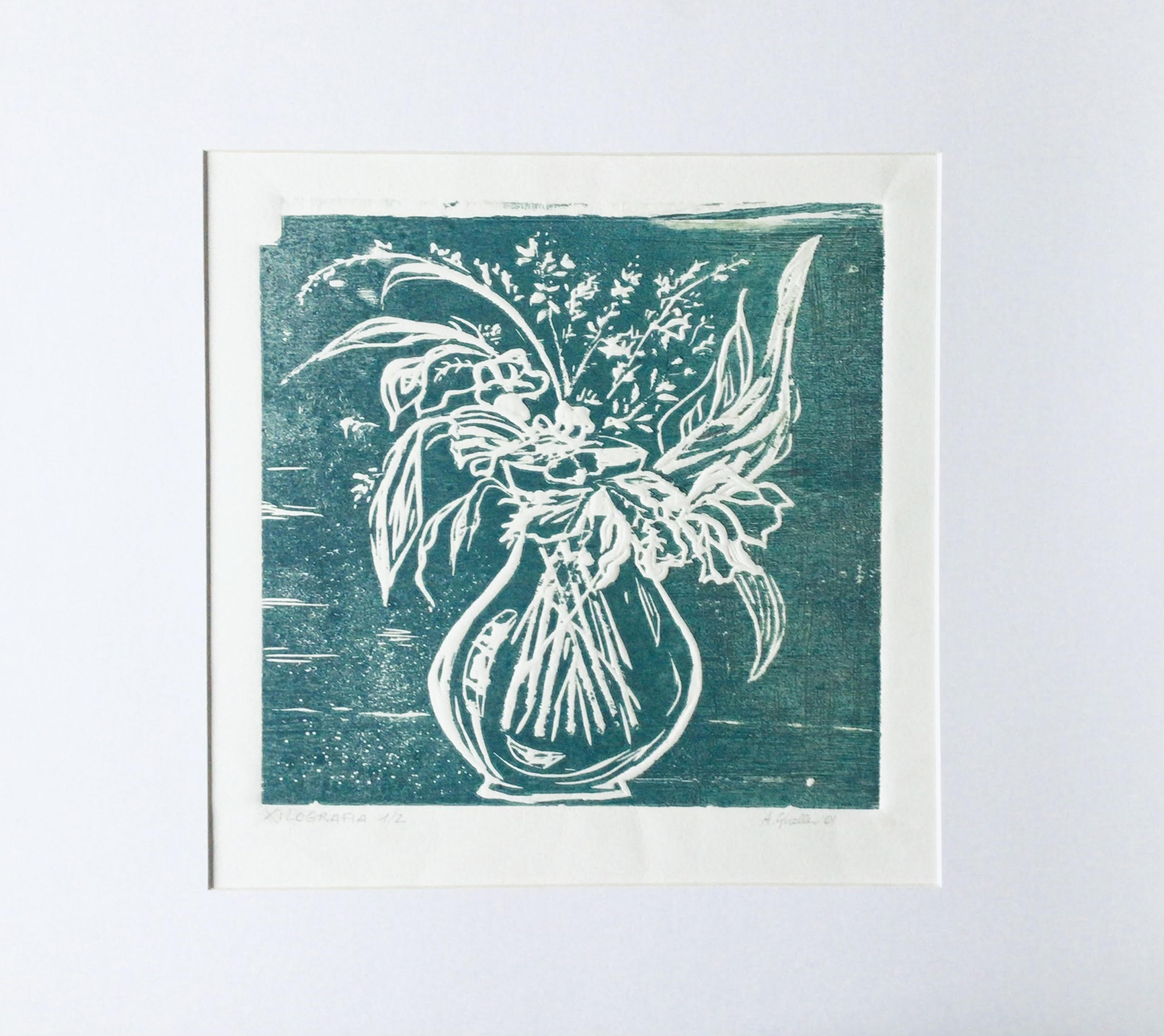 Annalisa Gheller - Italia - Vaso con fiori - Xilografia su matrice di legno - 29x29 cm