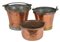 LOTTO DI RAMI composto da tre paioli in rame con manici in fetto battuto h cm...