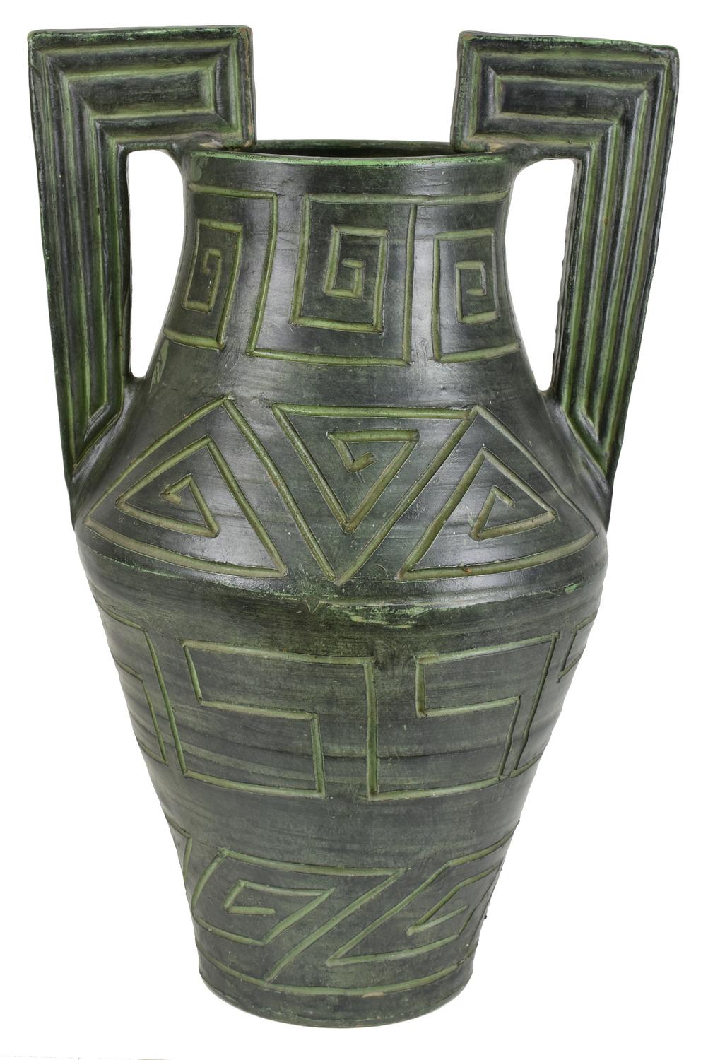ANFORA in terracotta dipinta decorata con motivi geometrici h cm 58