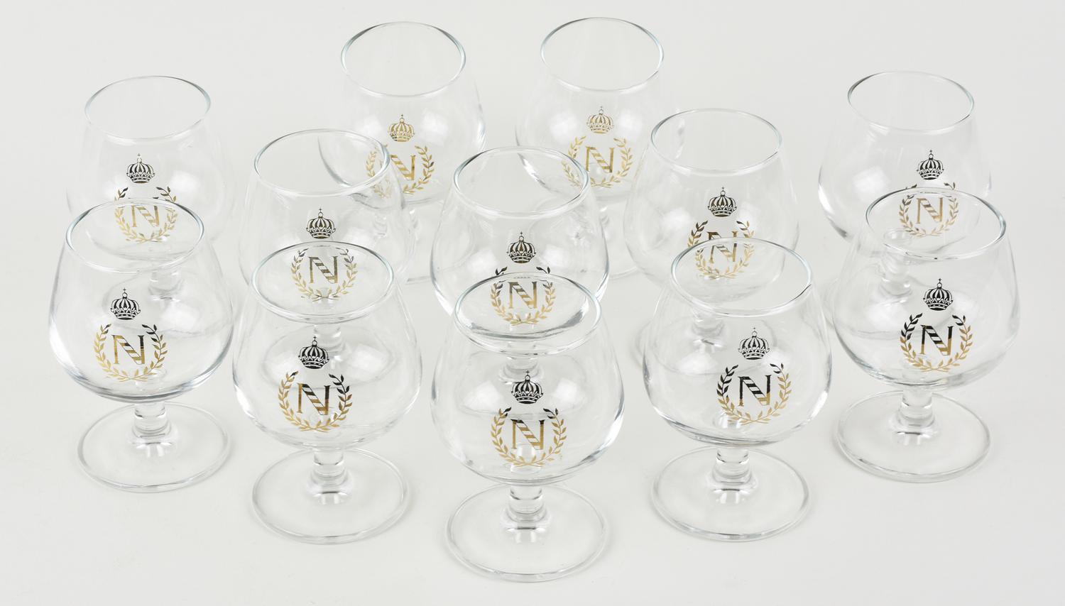 LOTTO DI 12 BICCHIERE DA BRANDY con stemma Napoleon coronato entro foglie...