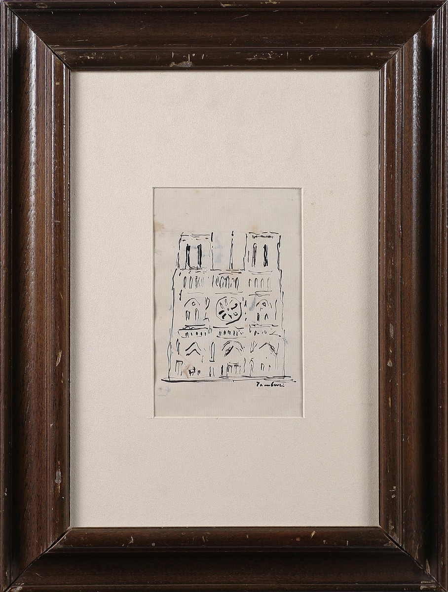TAMBURI ORFEO (1910 - 1994) Duomo. China su carta. Cm 24,00 x 35,00. Firma in basso a destra, Autentica dell'artista su fotografia. . Cornice presente
