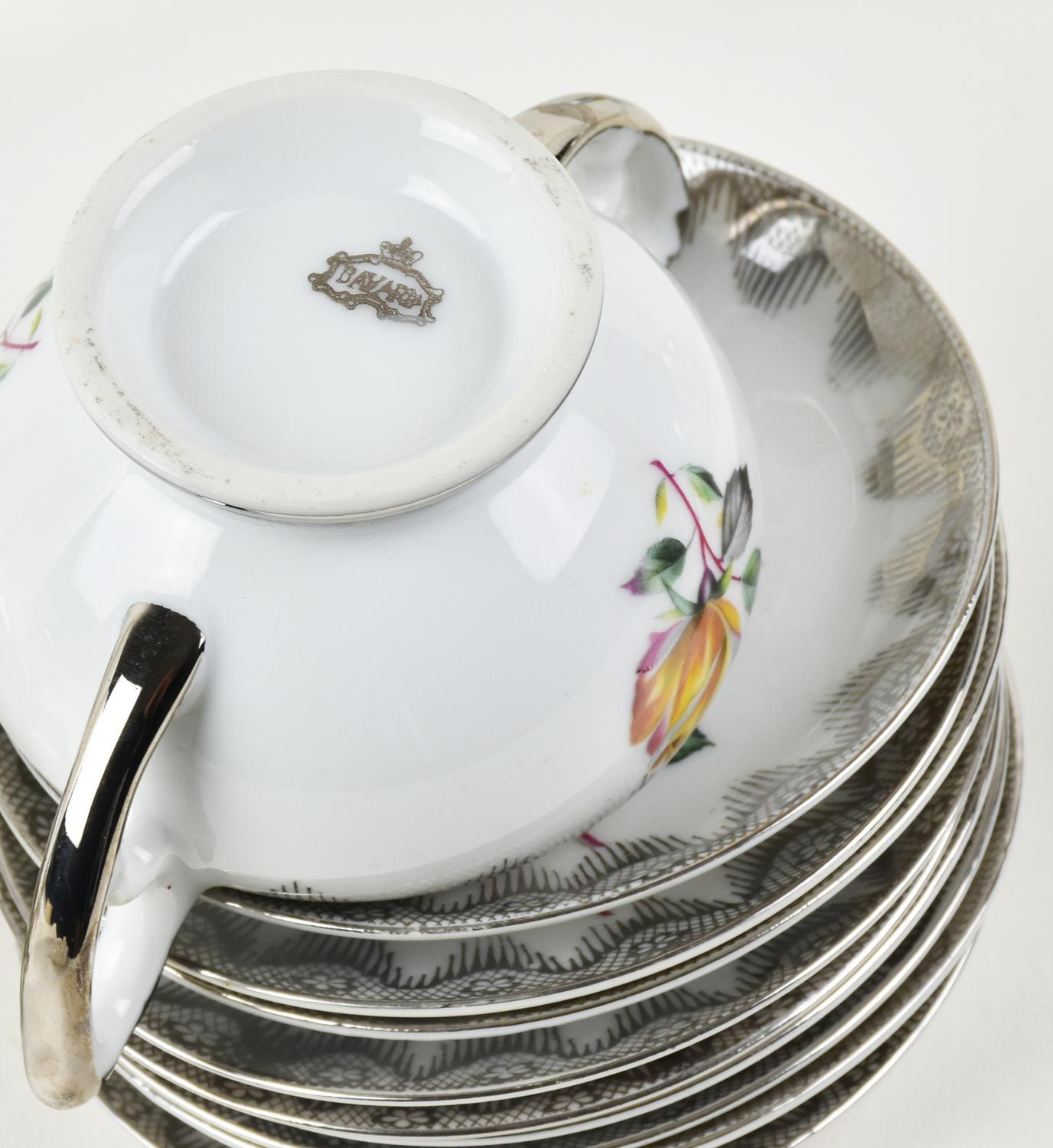 SERVIZIO DA CAFFE' BAVARIA con decorazioni in argento e piccole rose composto...