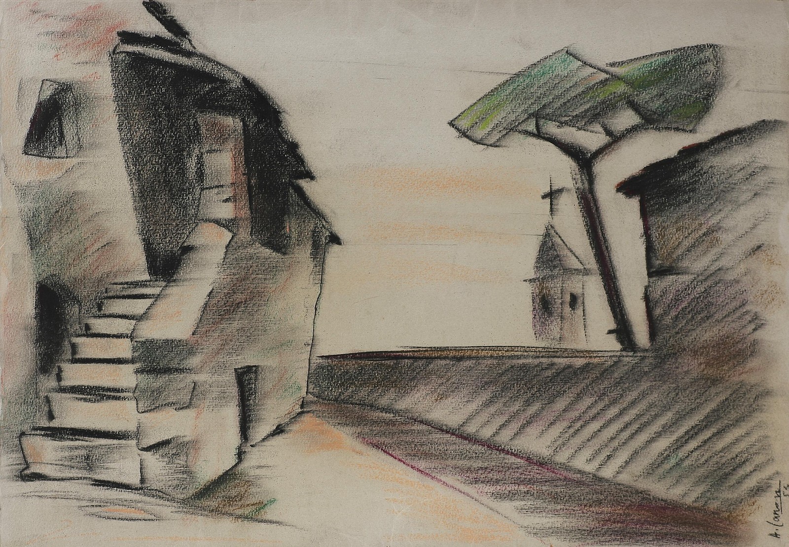CARON ALDO (1919 - 2006) Senza titolo. 1953. Tecnica mista su carta. Cm 50,00 x 34,50. Firma e data in basso a sinistra.