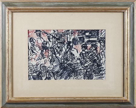 BORGIANNI GUIDO (1915 - 2011) Senza titolo. Pennarelli su carta. Cm 29,00 x 19,00. Firma in basso. Cornice presente